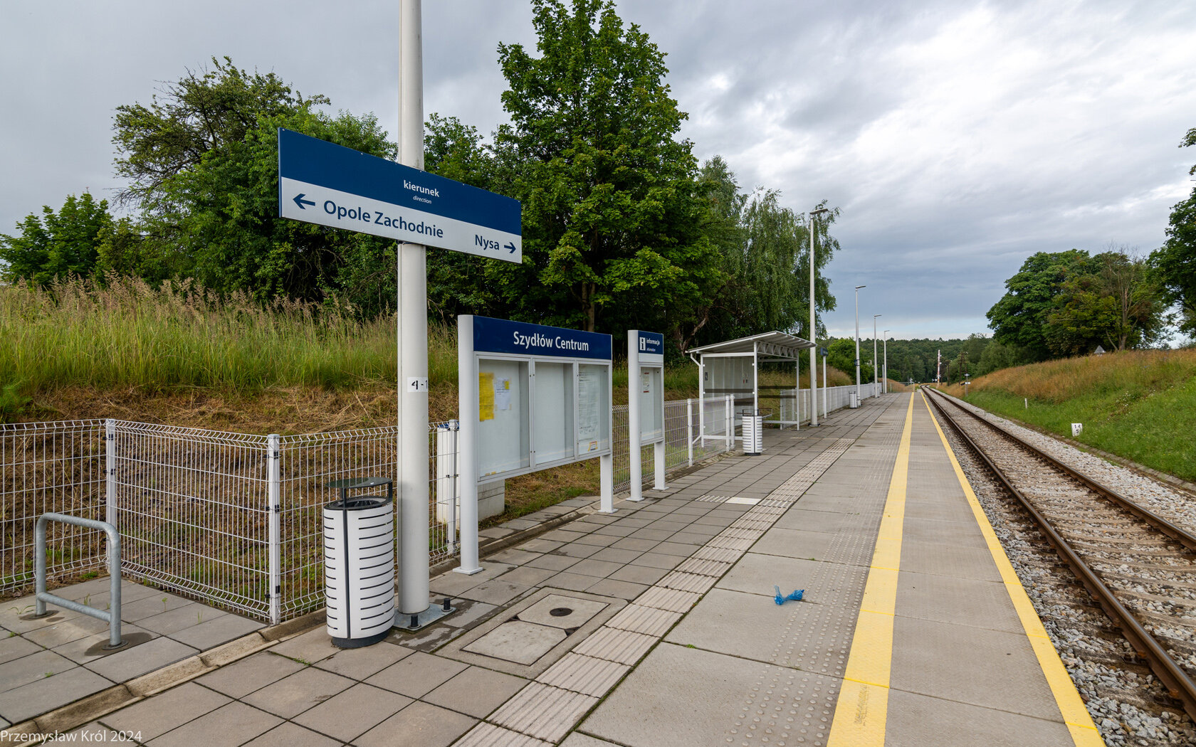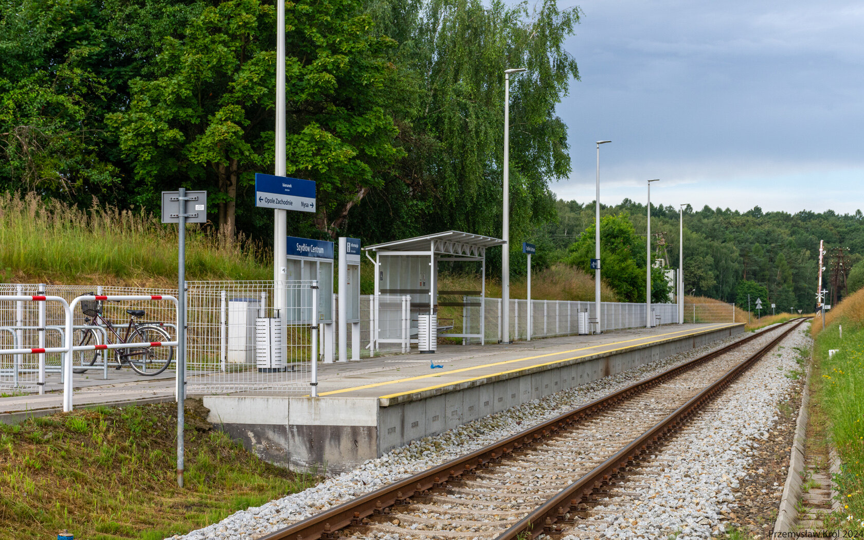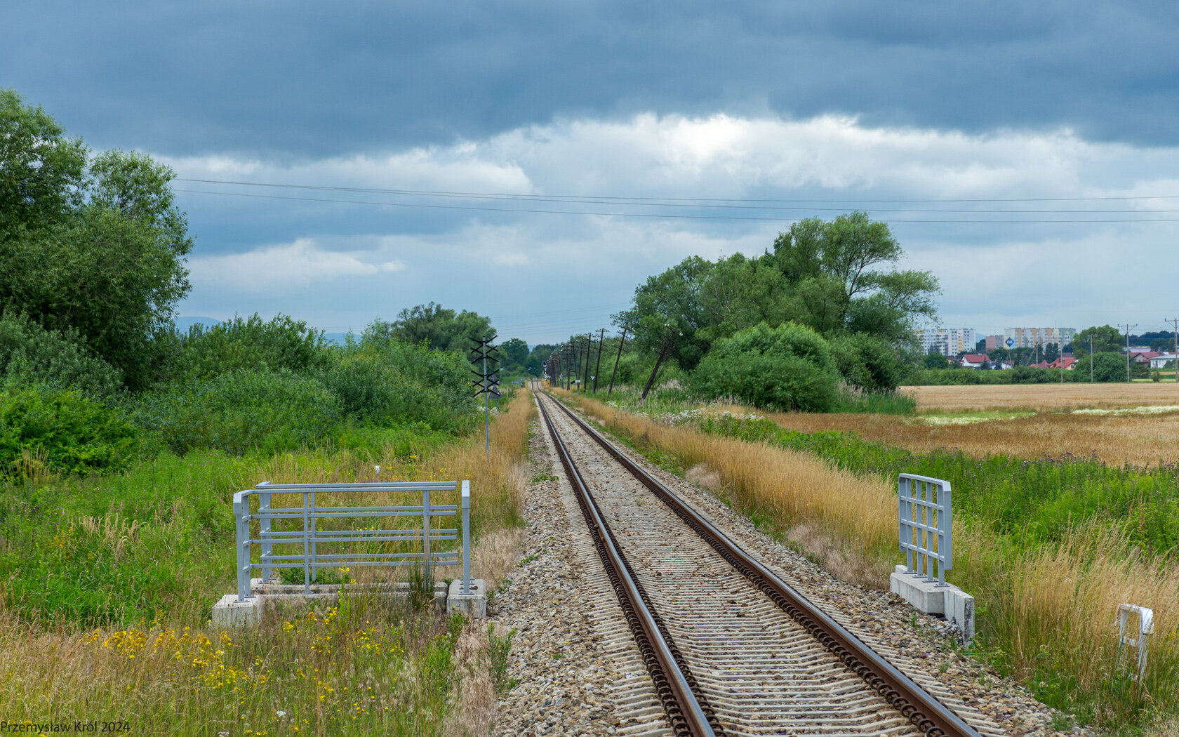 Ujęcie z peronu na maksymalnym zoomie w kierunku południowym (na Nysę).
