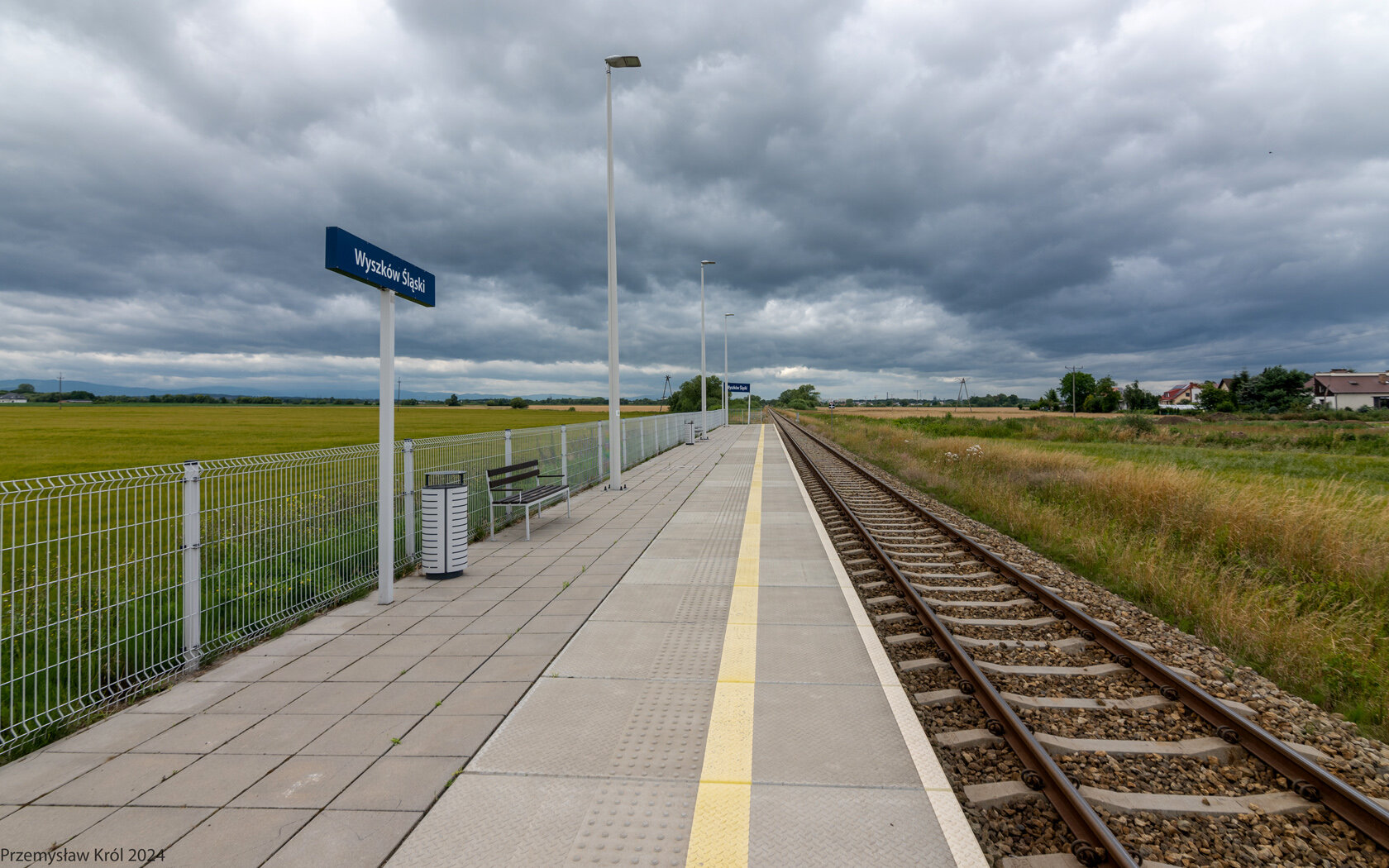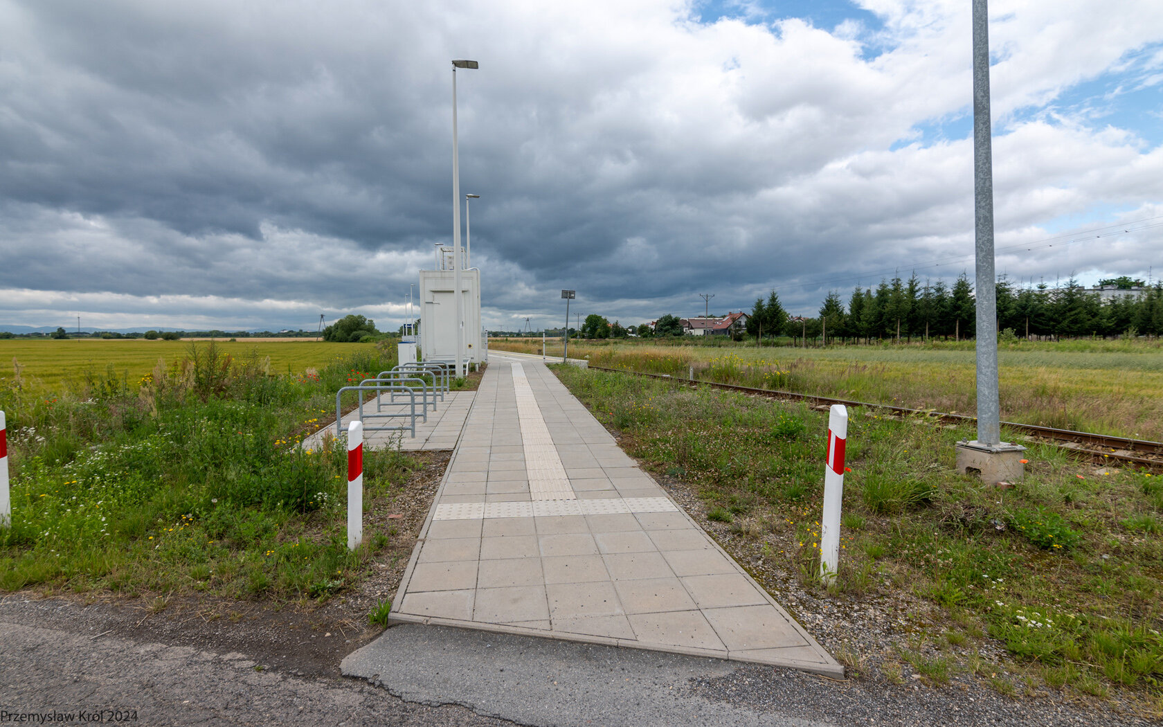 ujęcie na peron przystanku w Tułowicach "od końca" w stronę przejazdu do DW 405.