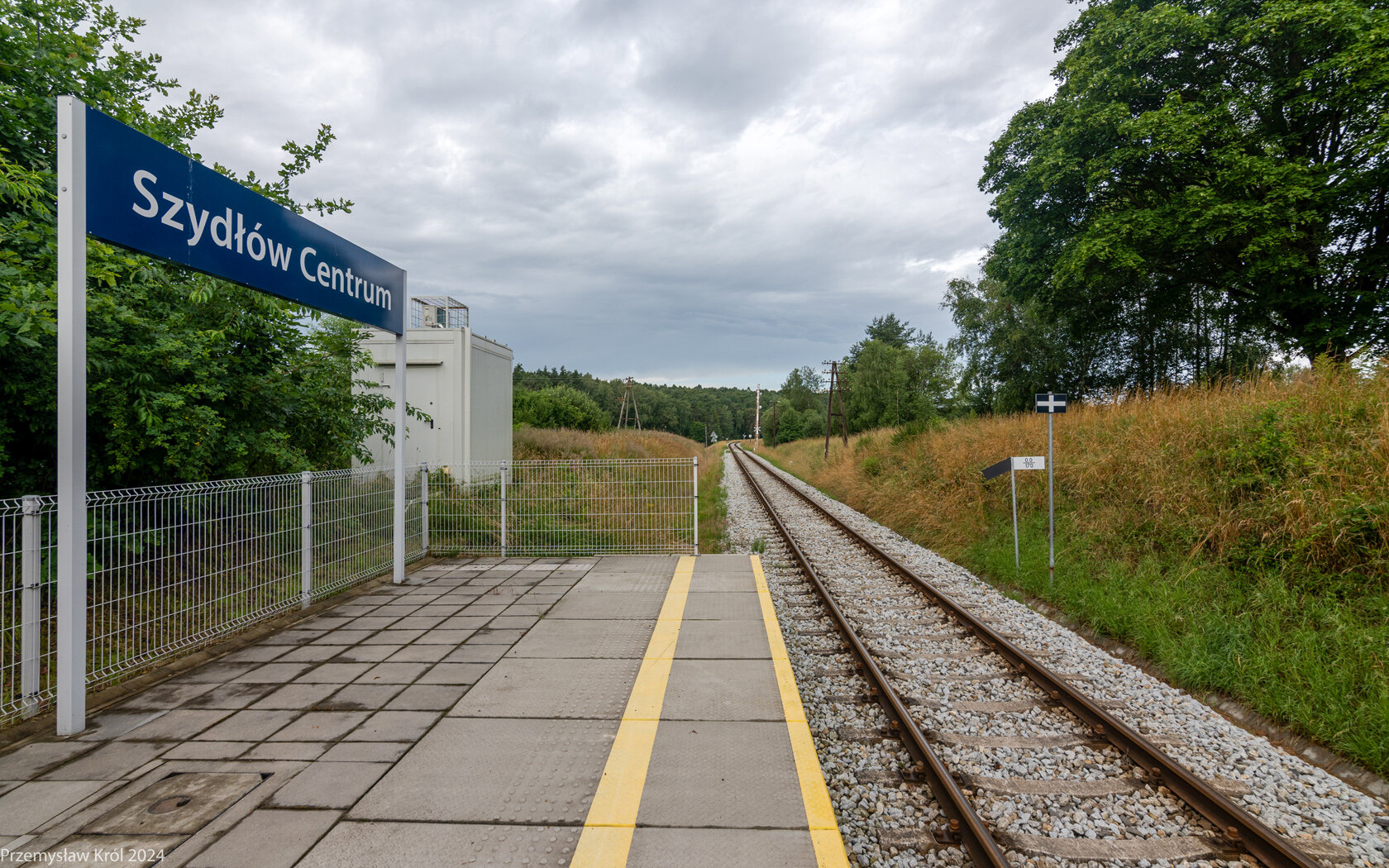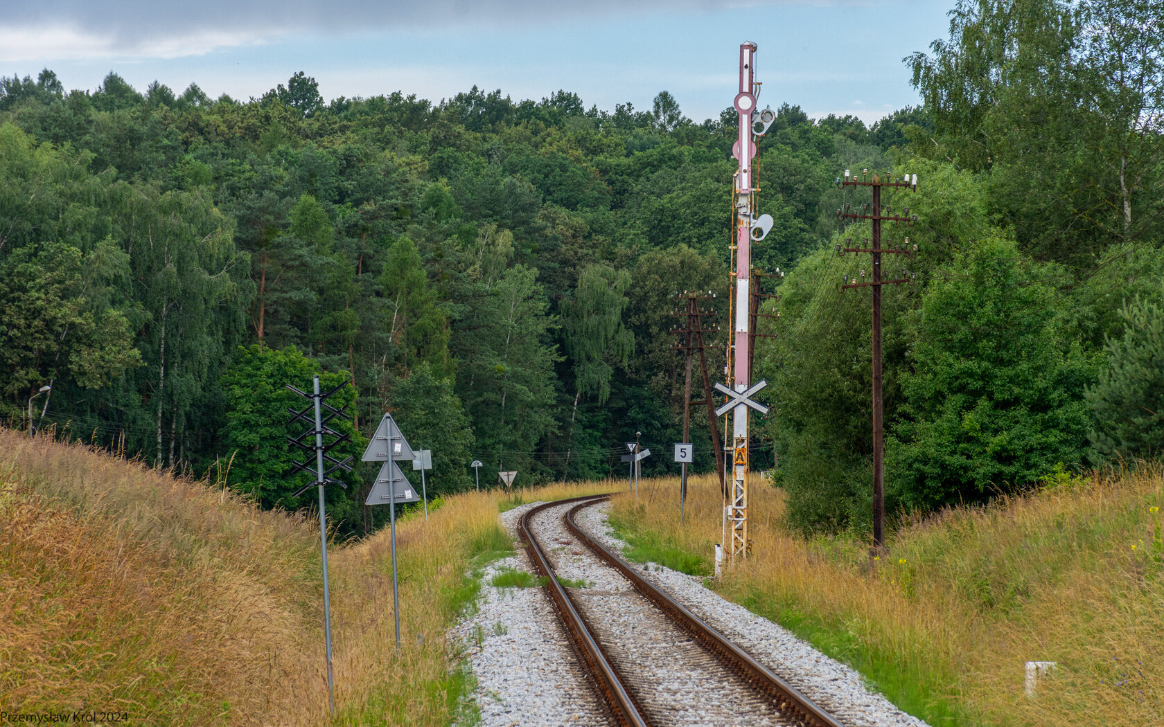 Widok na zlikwidowany semafor wjazdowy do stacji Szydłów.