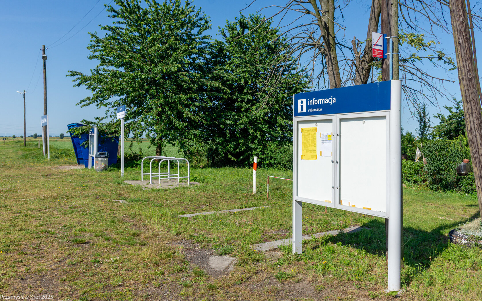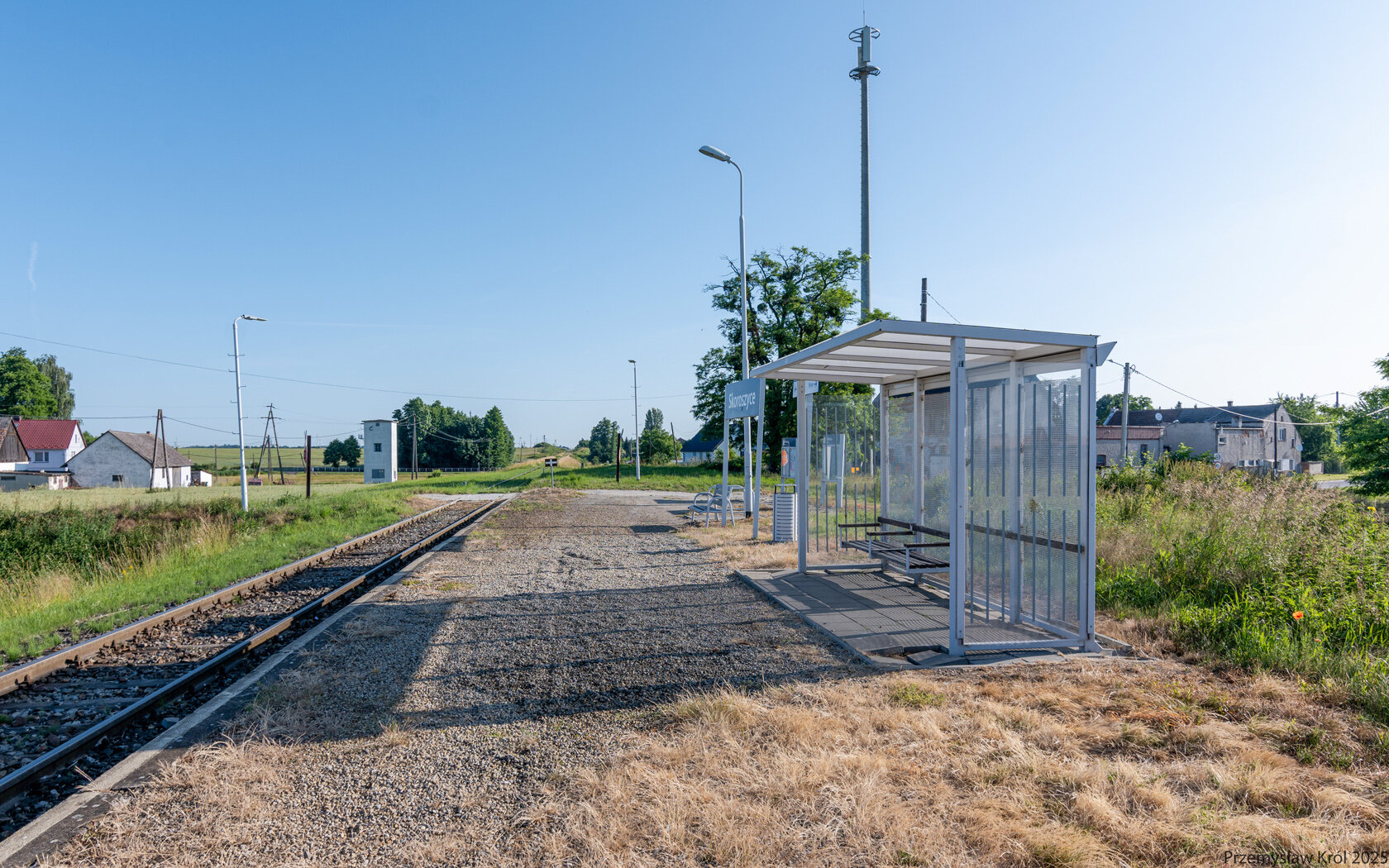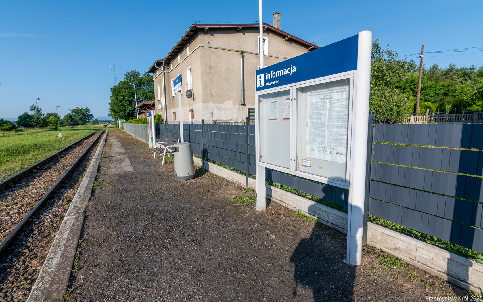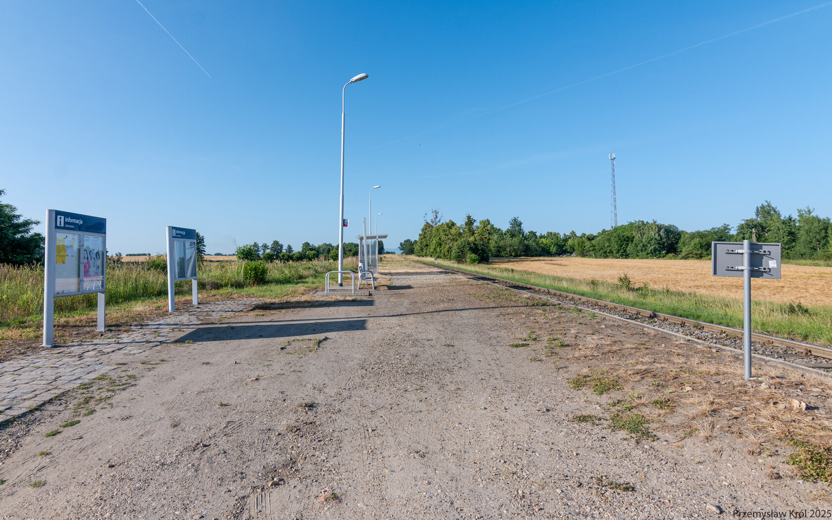Choć jest tu krawędź peronowa pociągi się tu nie zatrzymują, stają bliżej przejazdu, poza tym jeżdżą tutaj jedynie krótkie szynobusy.