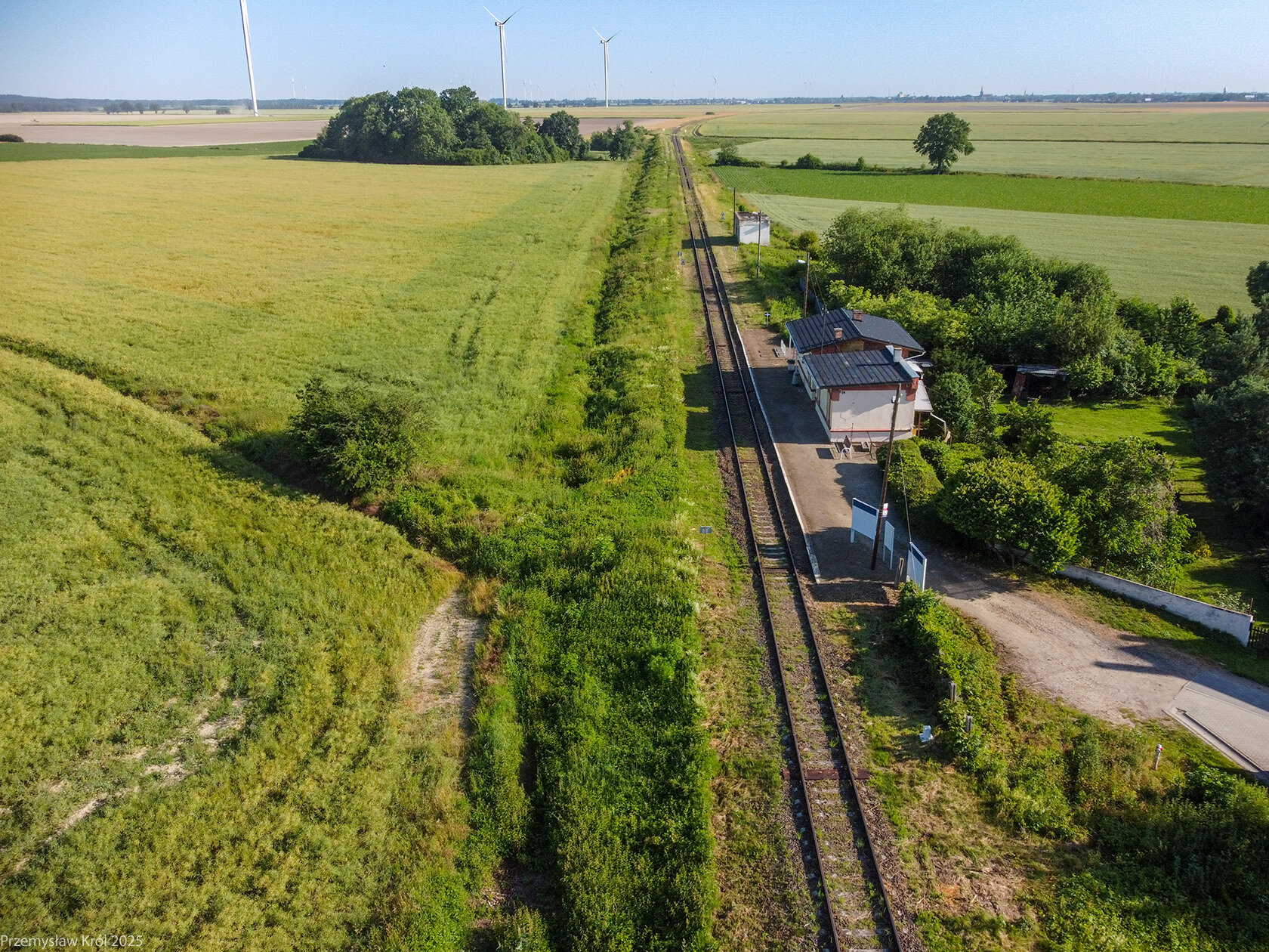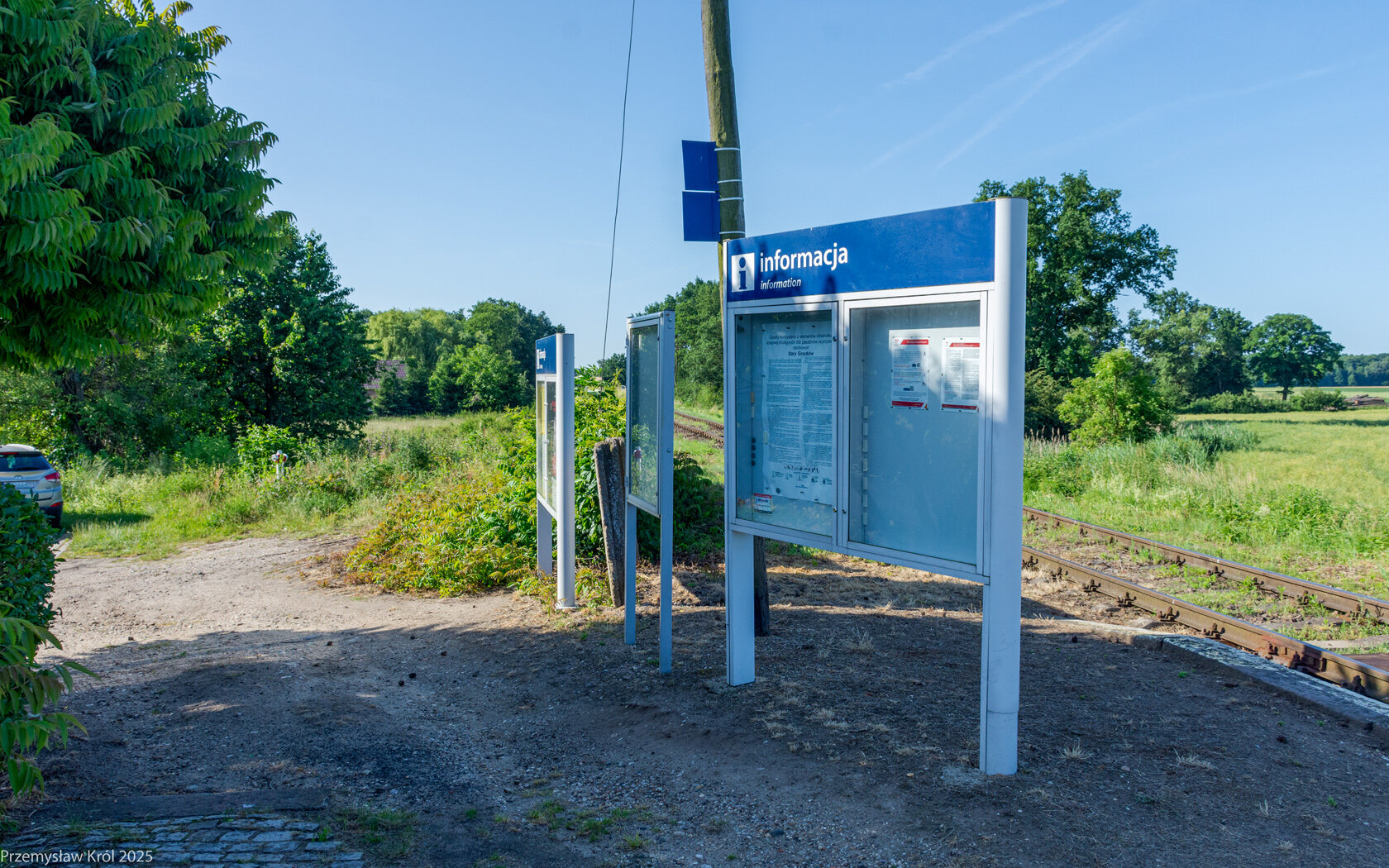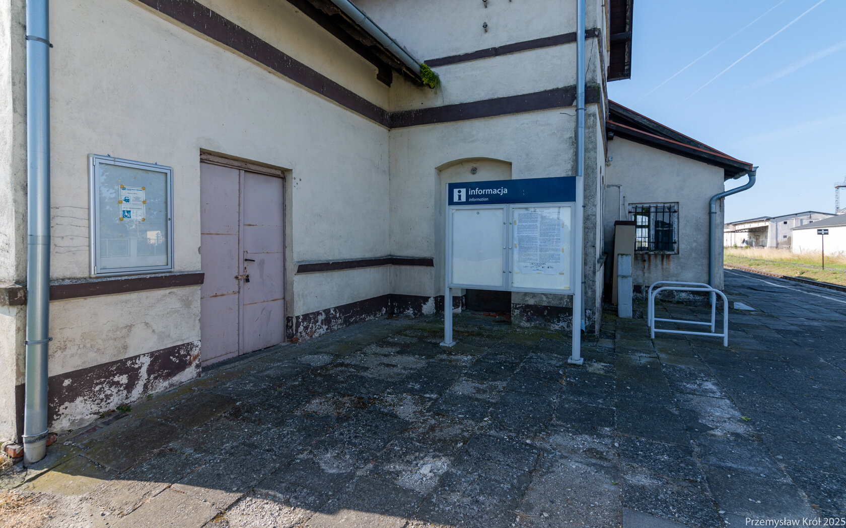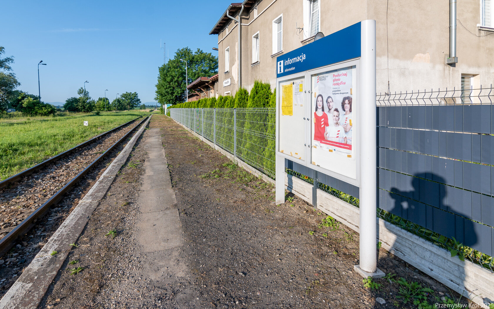 Choć jest tu krawędź peronowa pociągi się tu nie zatrzymują, stają bliżej przejazdu, poza tym jeżdżą tutaj jedynie krótkie szynobusy.