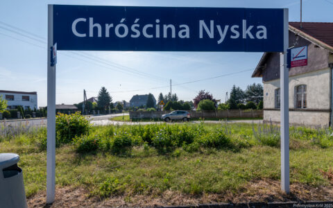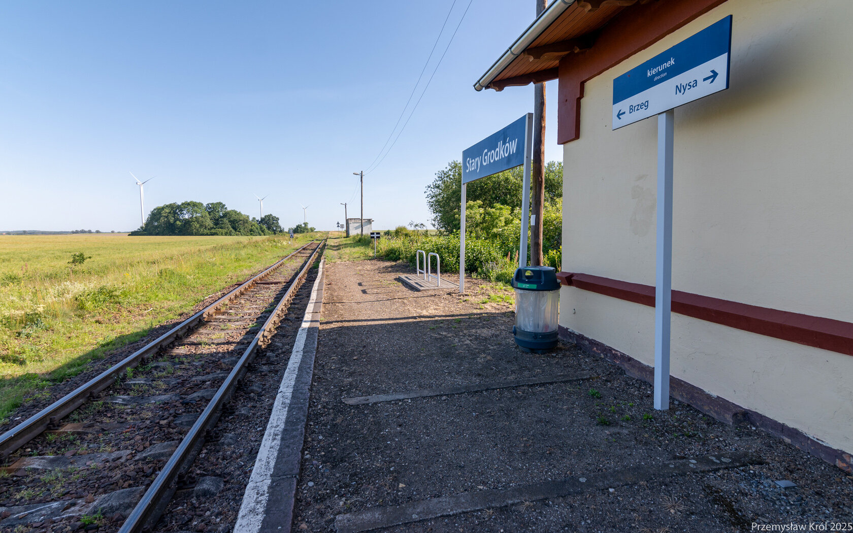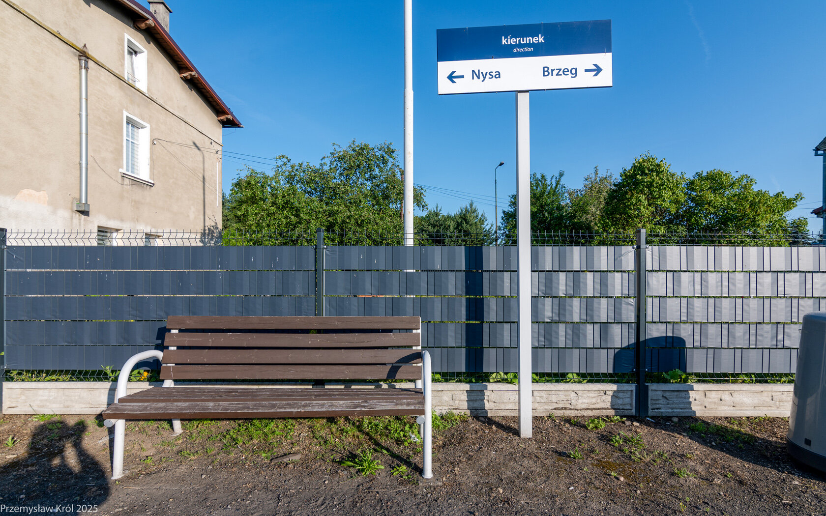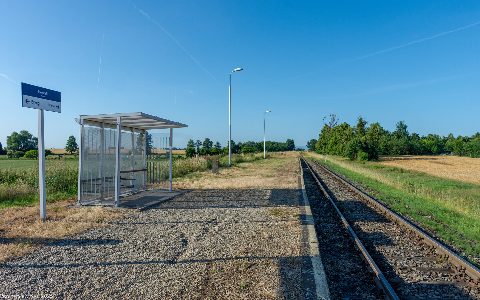 Znacznik W4 w kierunku Nysy, od tej właśnie stacji jest około 15 kilometrów kolejowych.