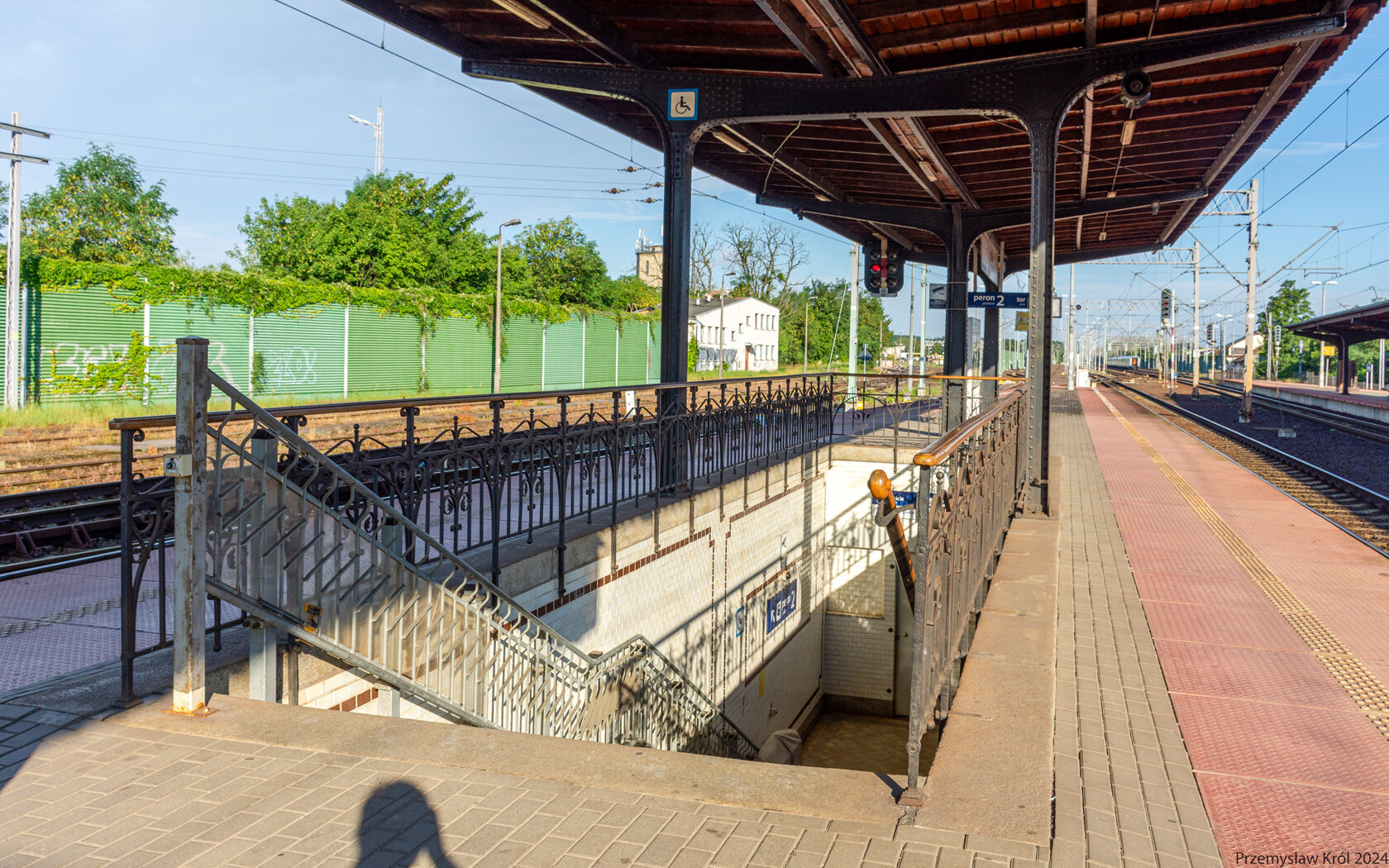 Widok z peronu w kierunku wyjścia ta część peronu ma jeszcze słupy oświetleniowe ale czy PKP PLK oświetla cały ten peron tego nie wiem.