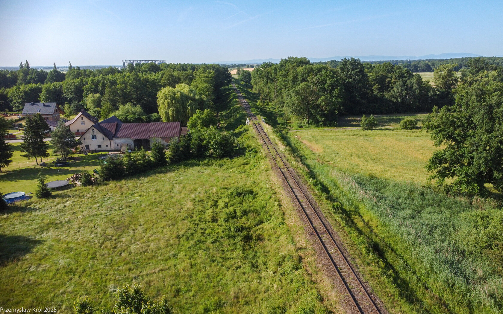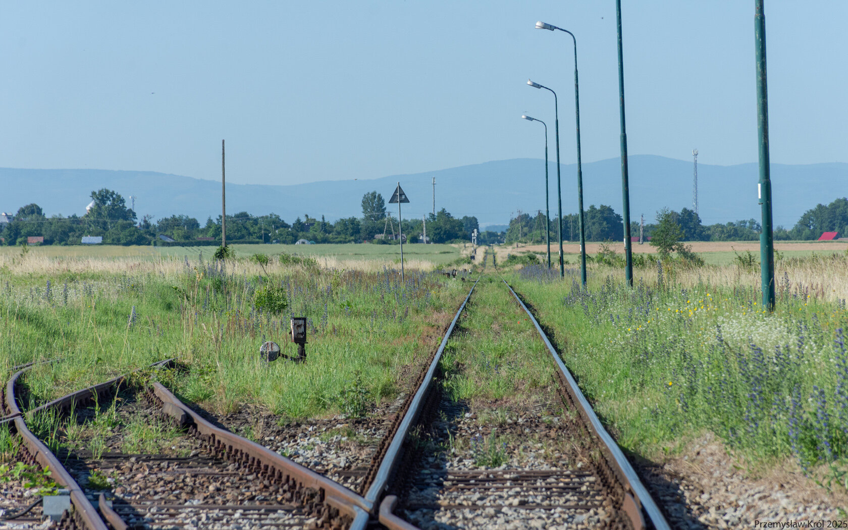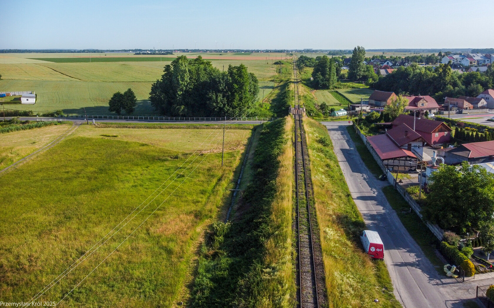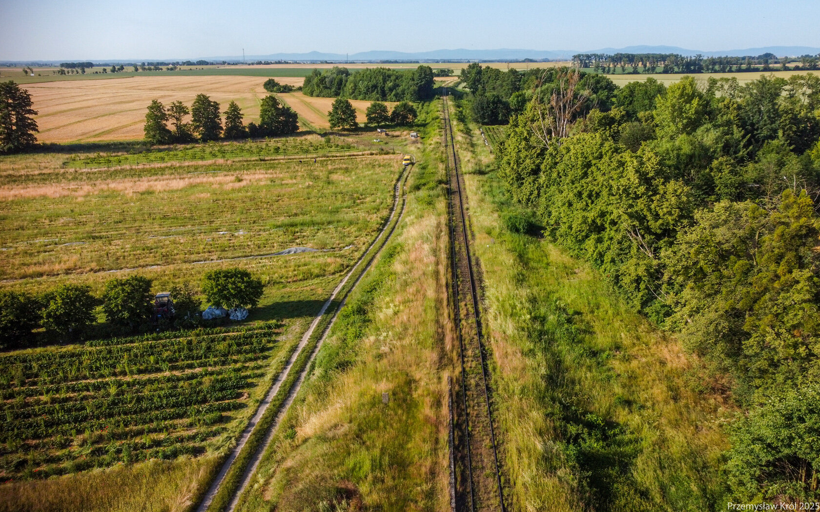 Zdjęcie z góry na linię kolejową 288 w kierunku jej końca.
