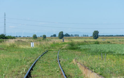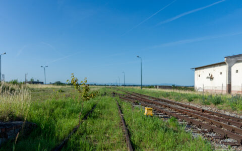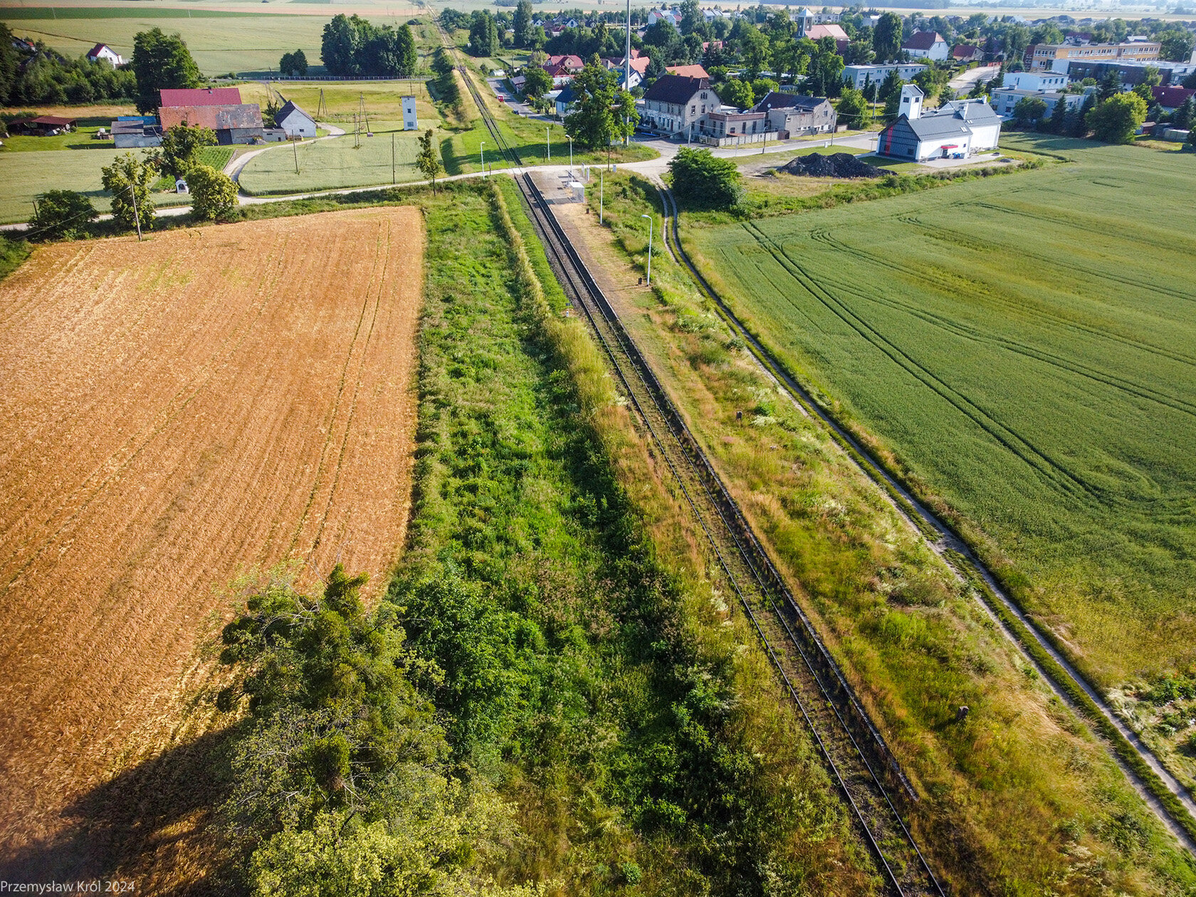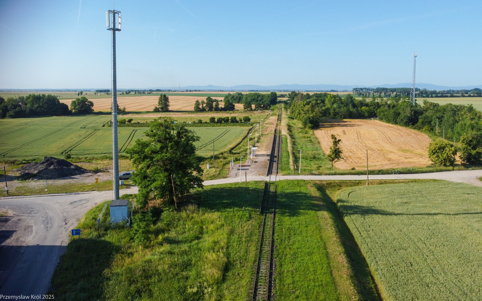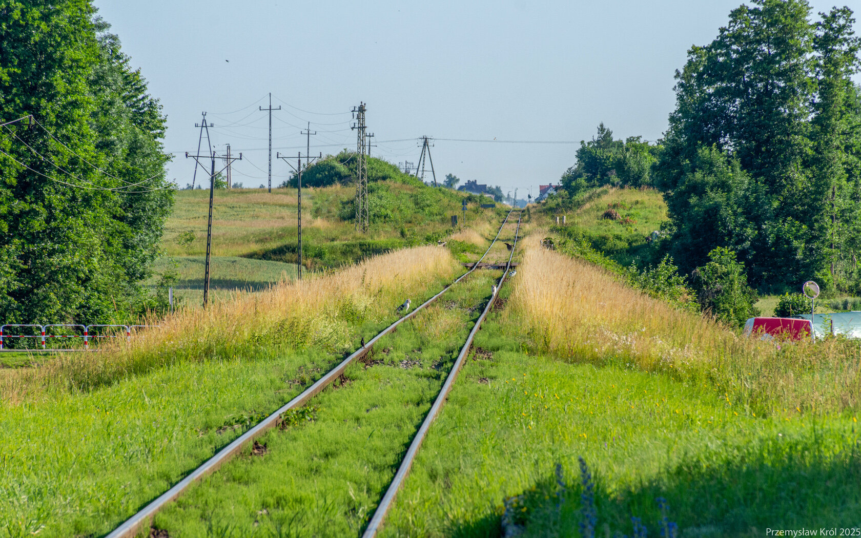 Zdjęcie z góry na linię kolejową 288 w kierunku jej końca.