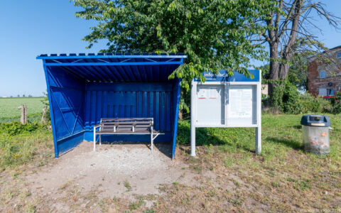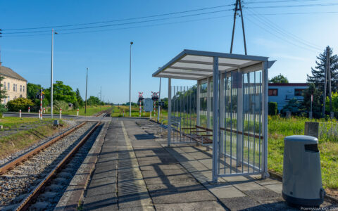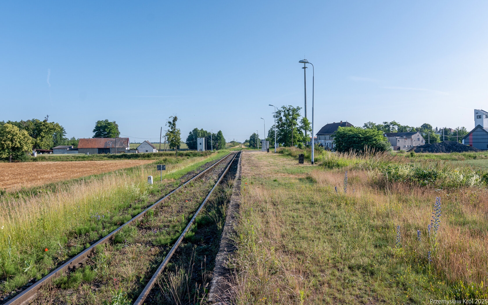 Ujęcie na wiatę peronową, za wiatą nie ma już elementów dla pasażerów.