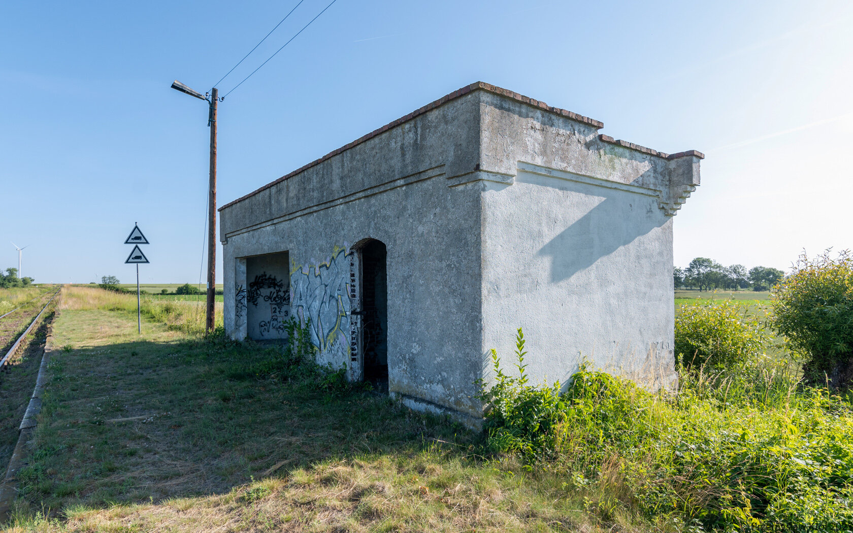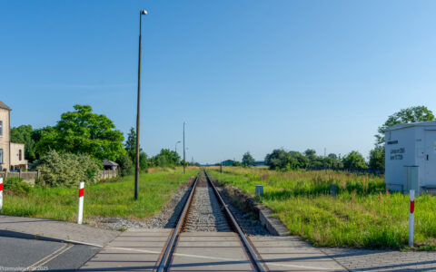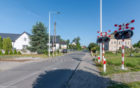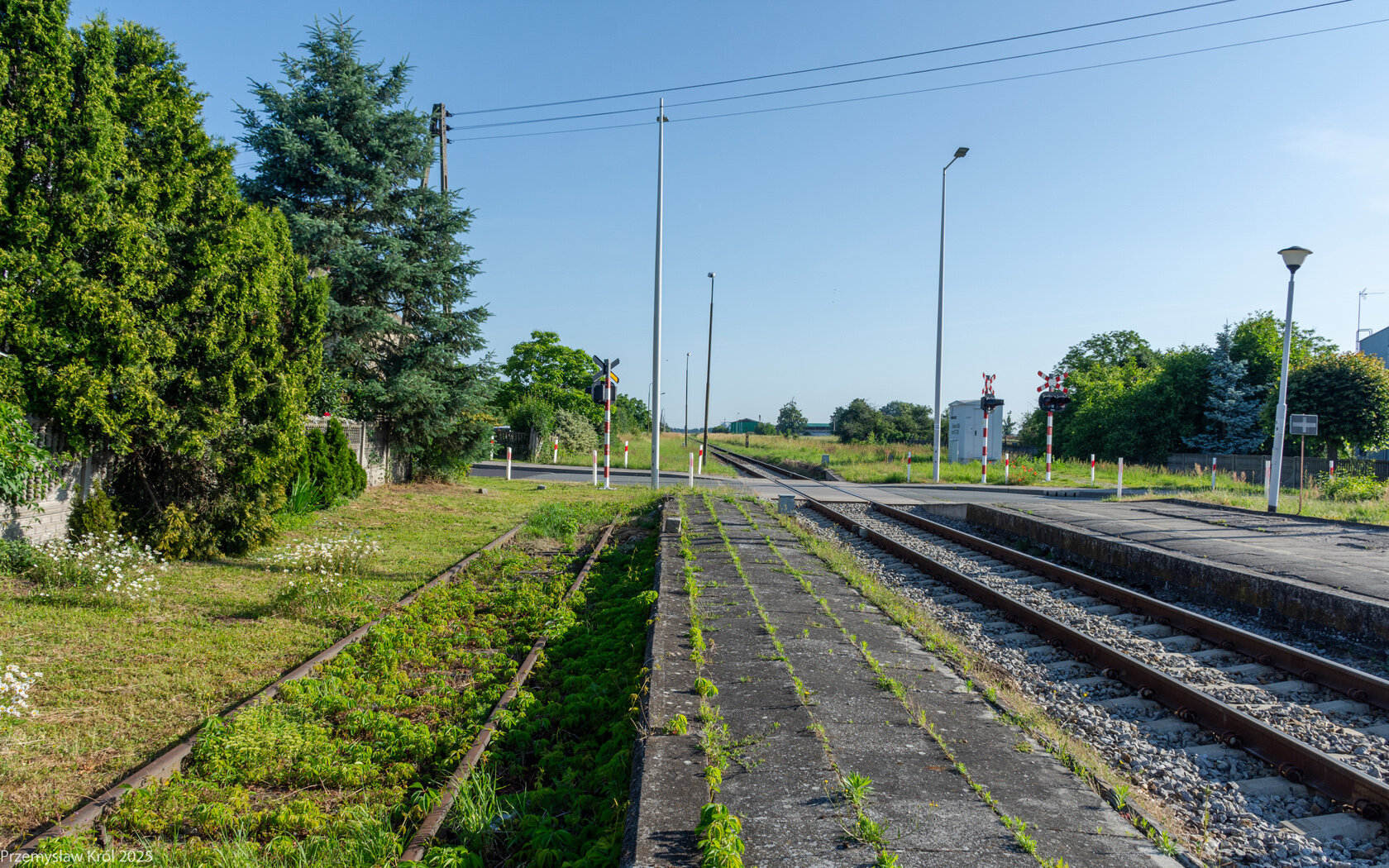Kiedyś budowano perony dzieląc przejazdy kolejowe, dziś już się tak nie buduje. tu nieużywana część peronu za przejazdem.