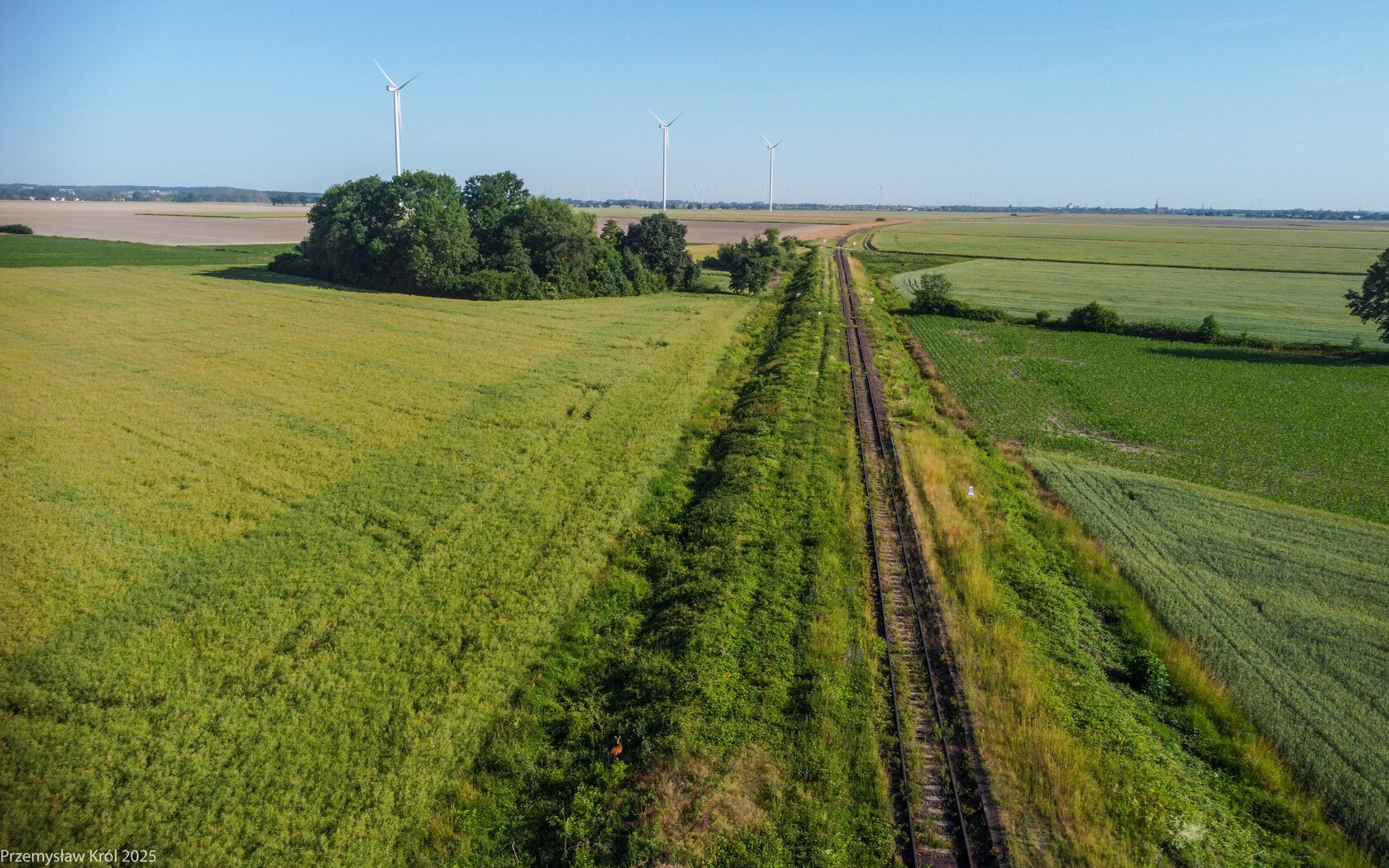 Tory giną w trawie, ujęcie z powietrza w kierunku południowym.