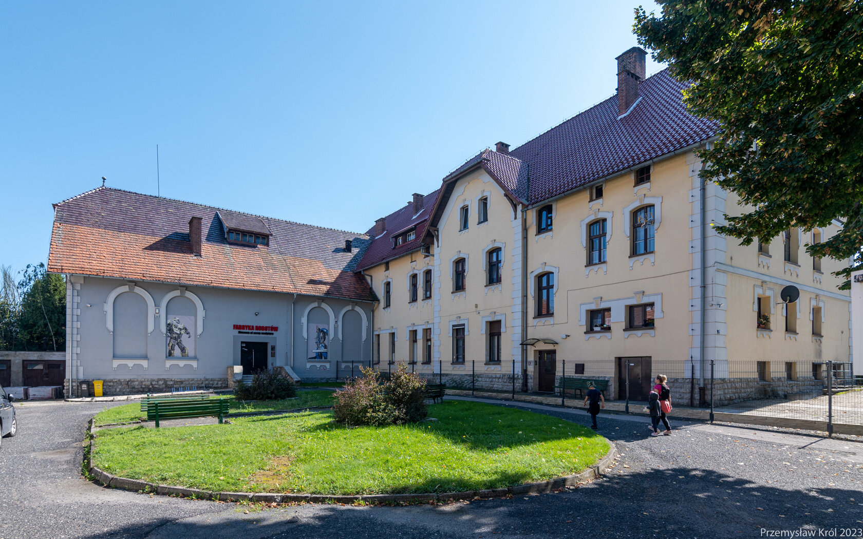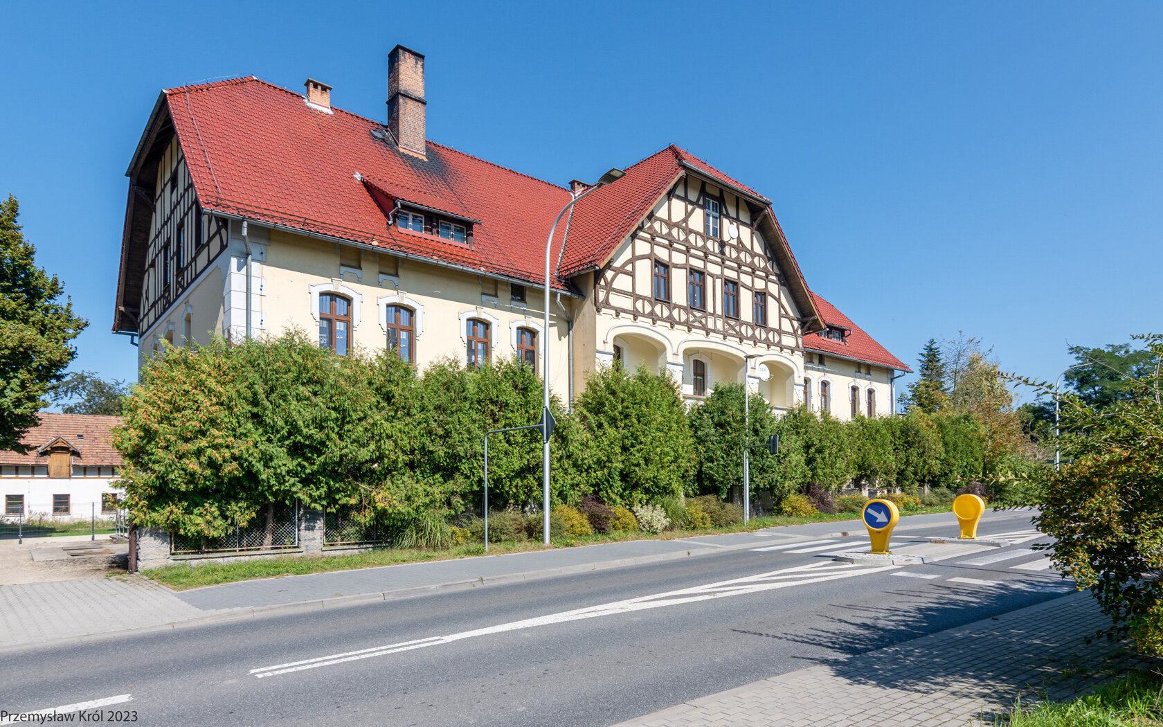 Odnowiony dawny dworzec kolejowy od strony torów.