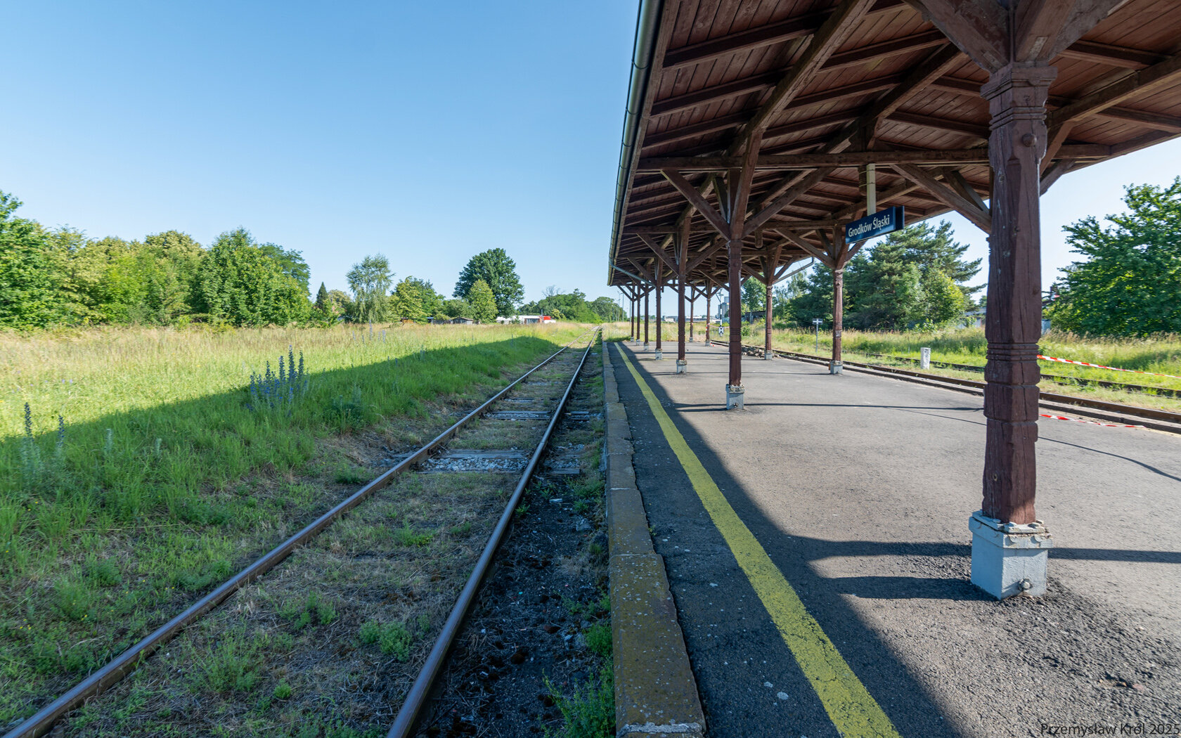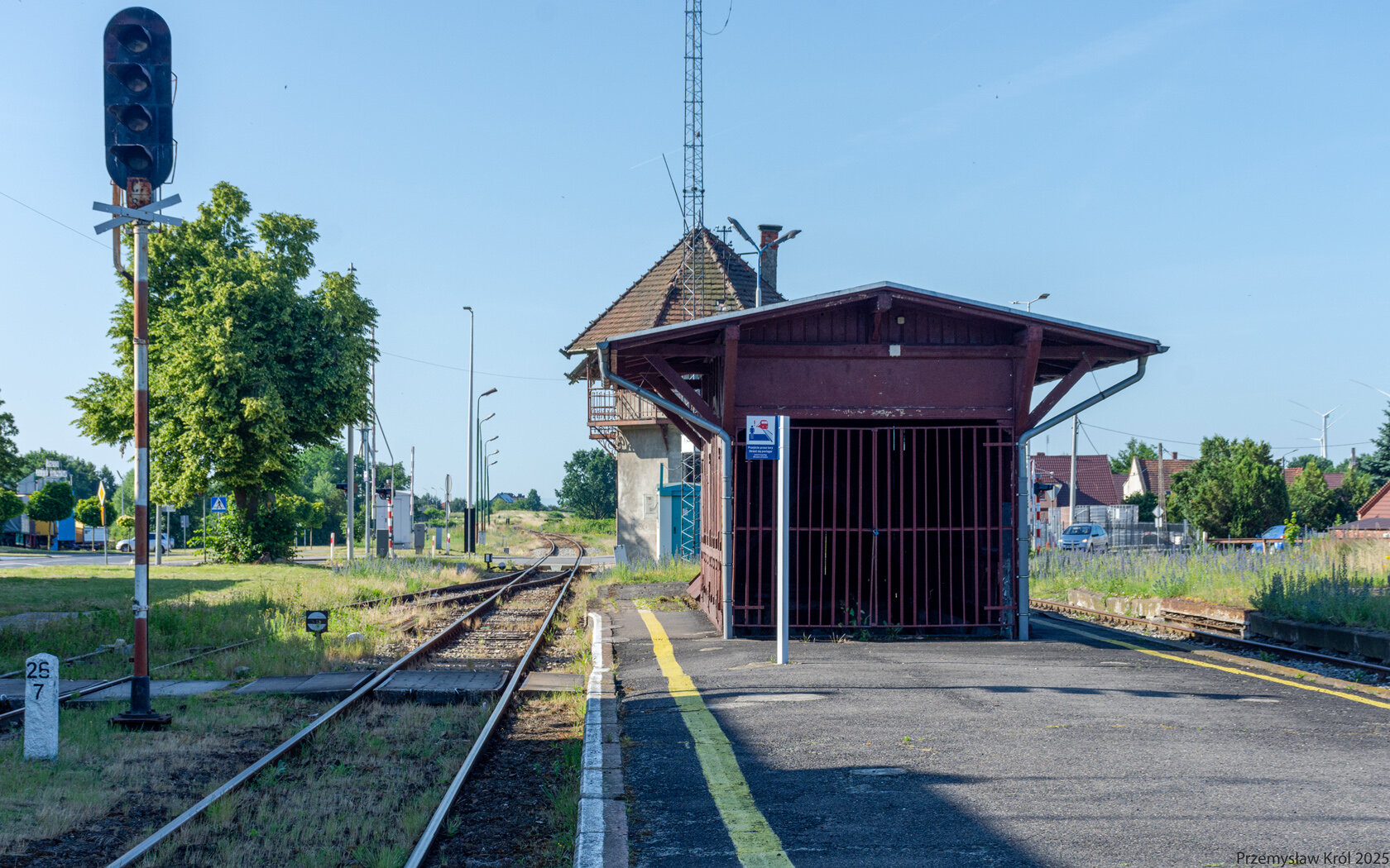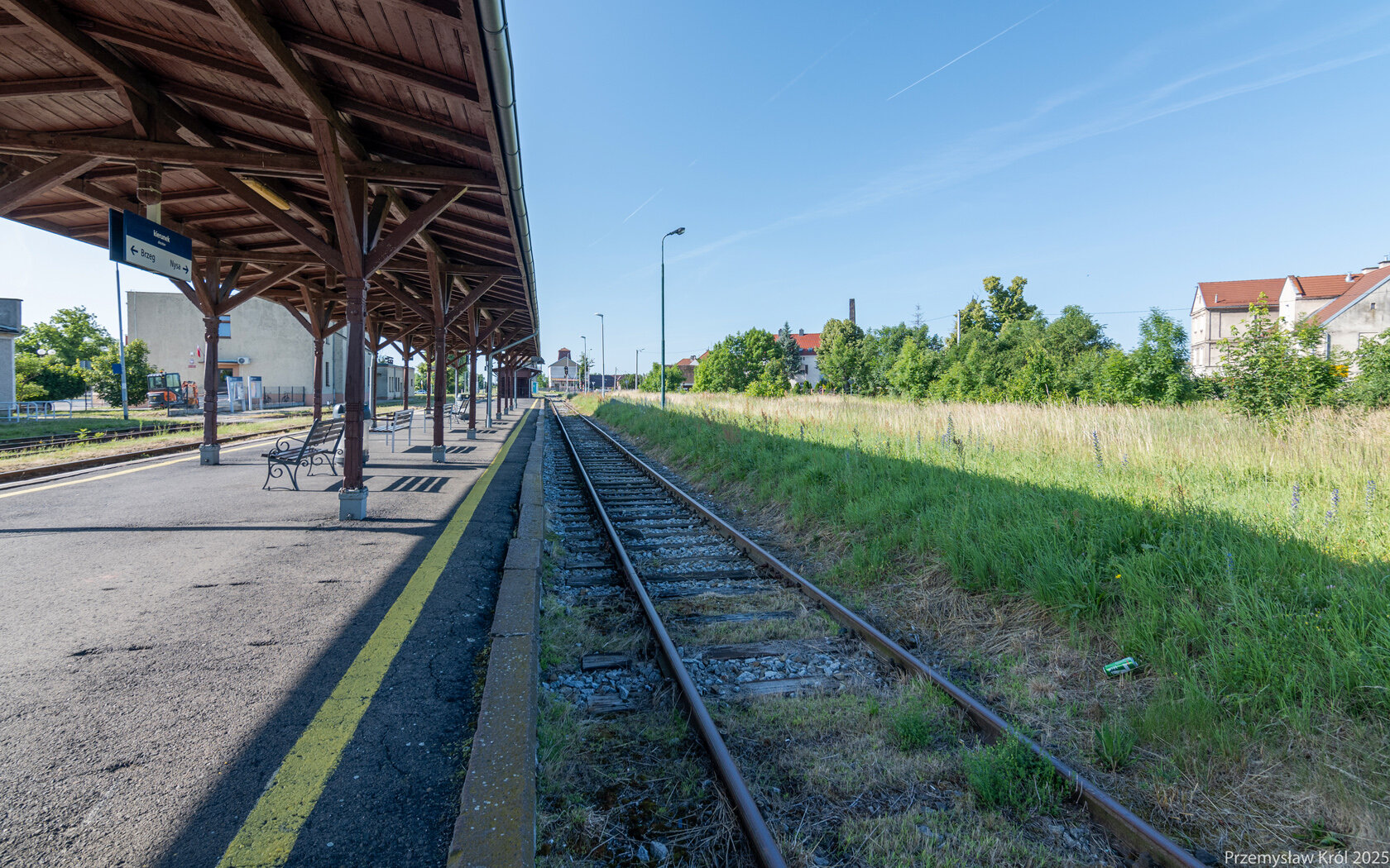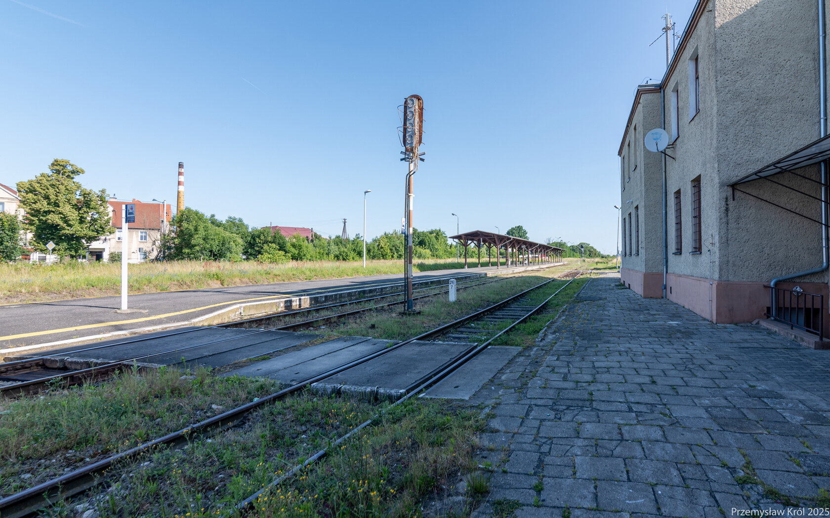 Kadr w kierunku północnym z peronu stacji.