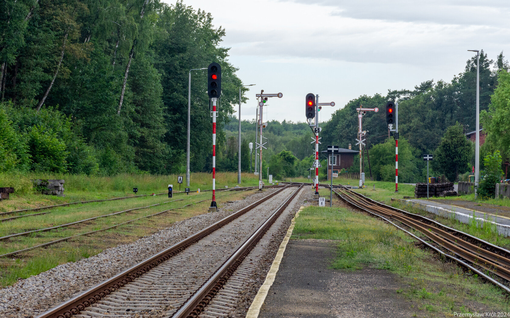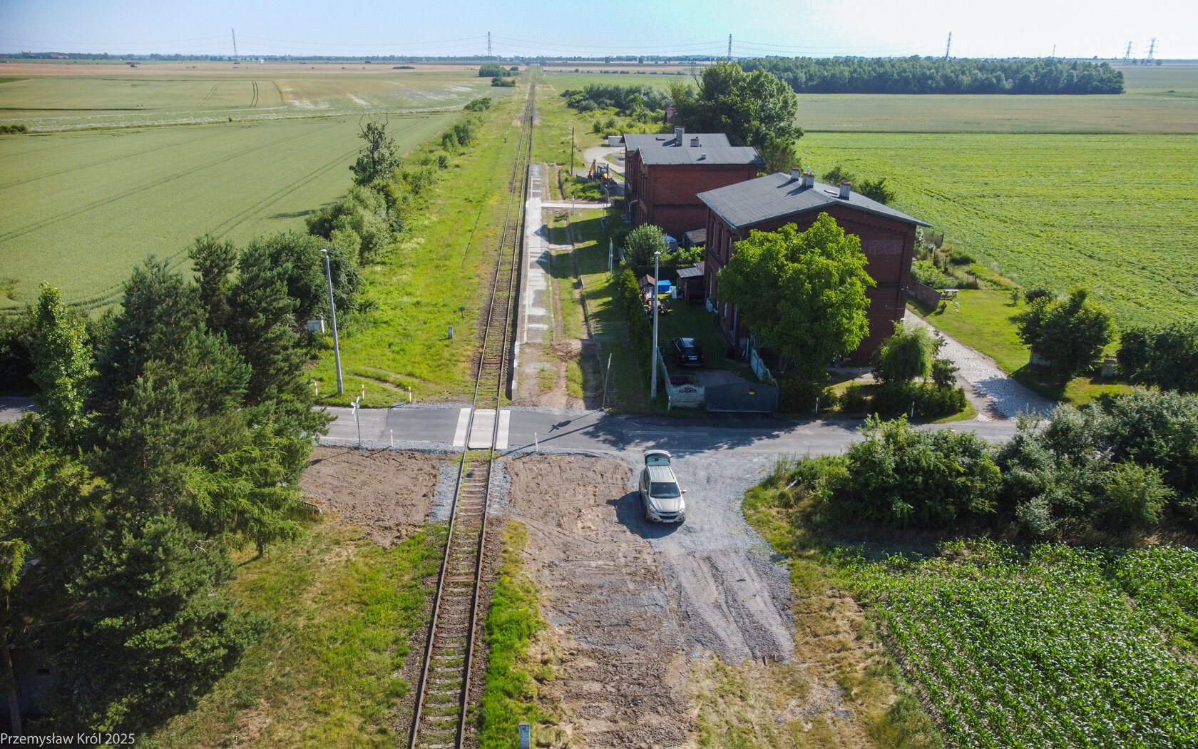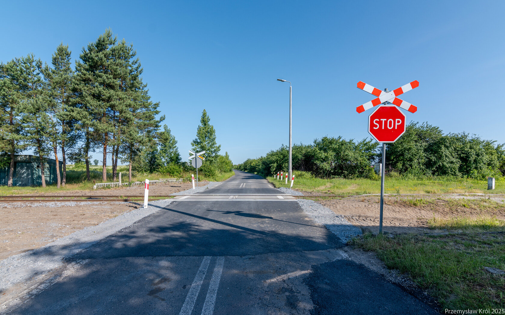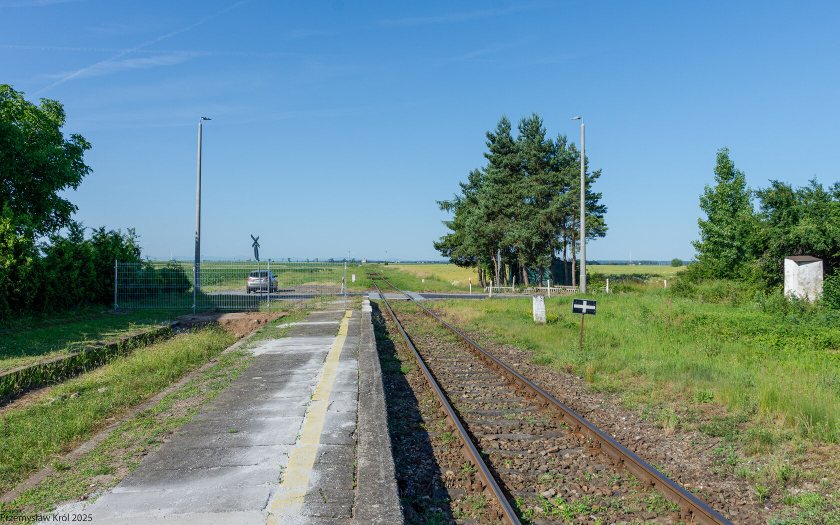 Dawna stacja położona jest przy tym przejeździe zabezpieczonym jedynie znakiem STOP.