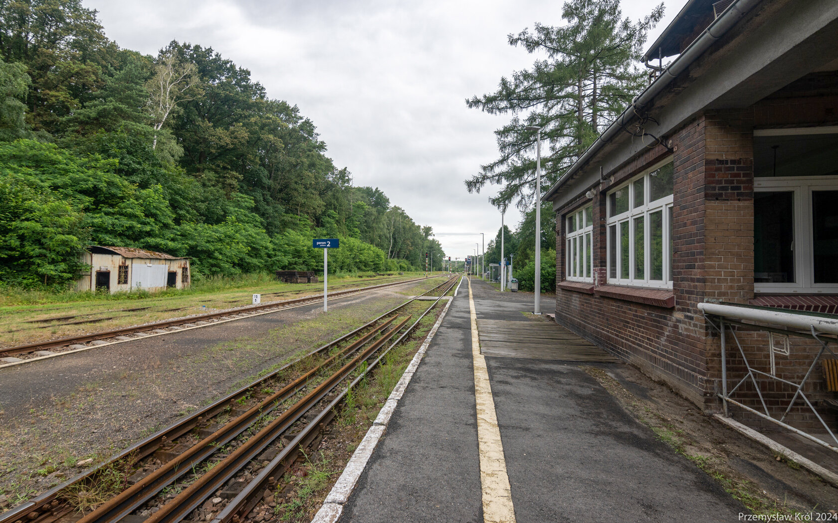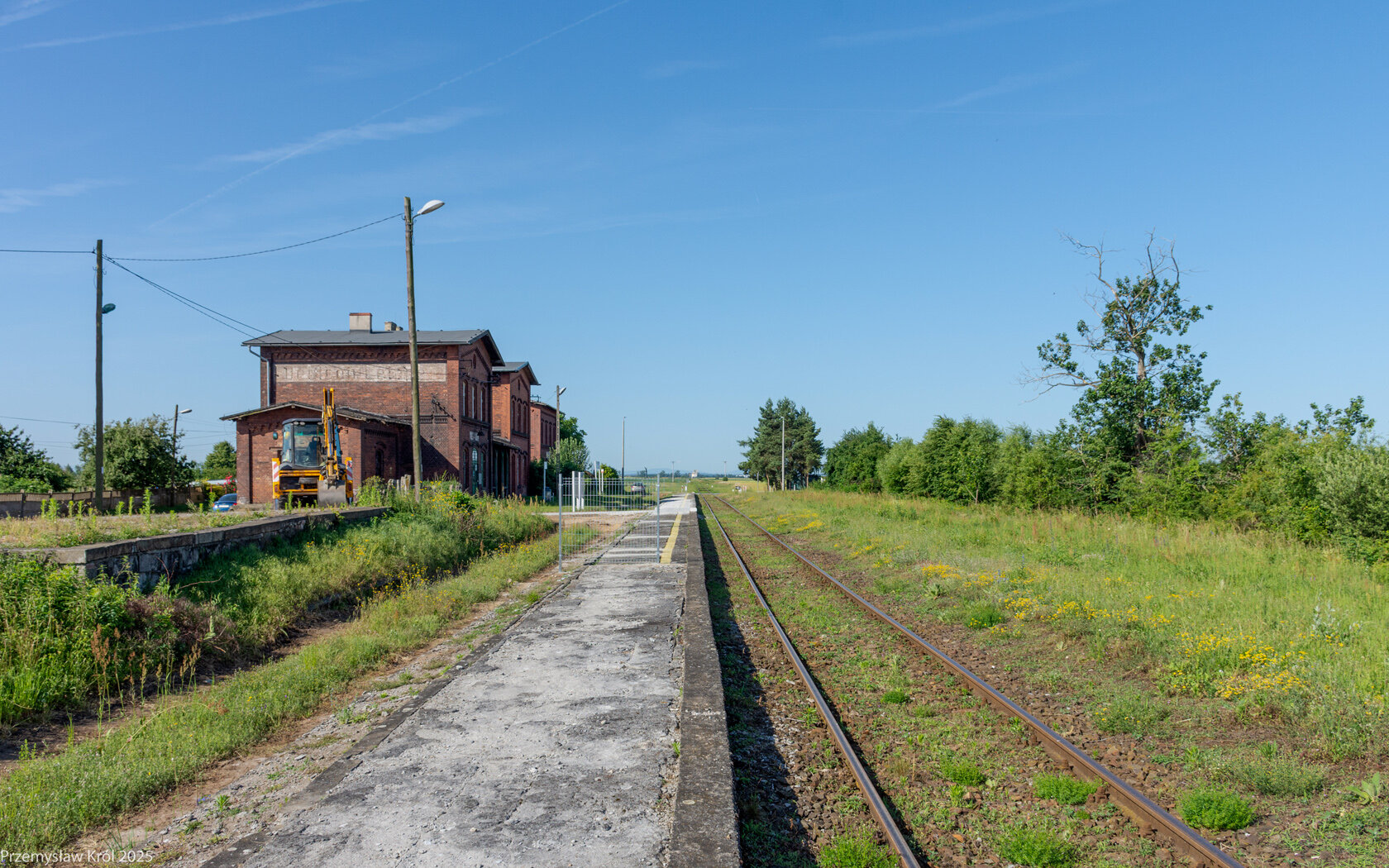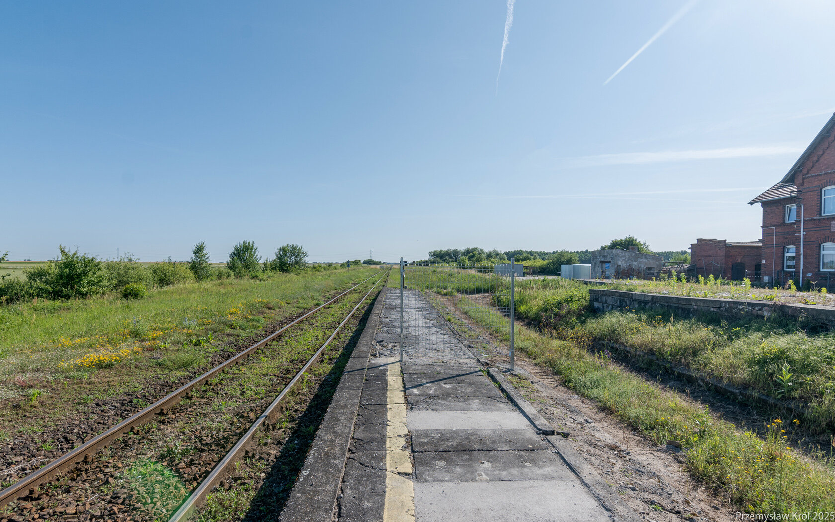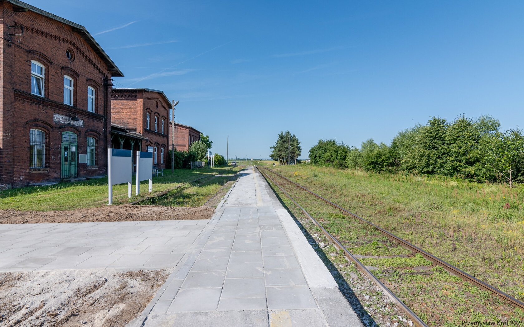 Bezpośrednio pod budynkiem dworca również był peron, dziś to pozostałość po dawnych czasach w firmie krawężnika przy rozebranym torze.