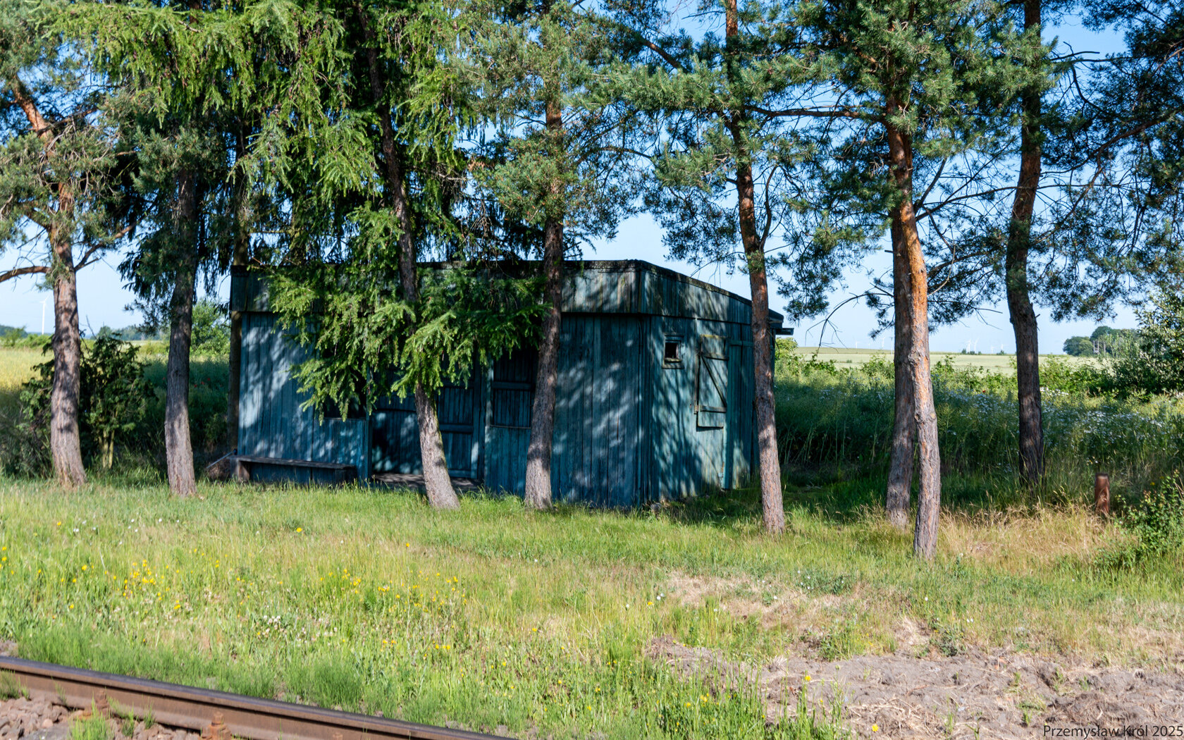 To prawdopodobnie był budynek wagi kolejowej, dziś rozpadający się blaszak.