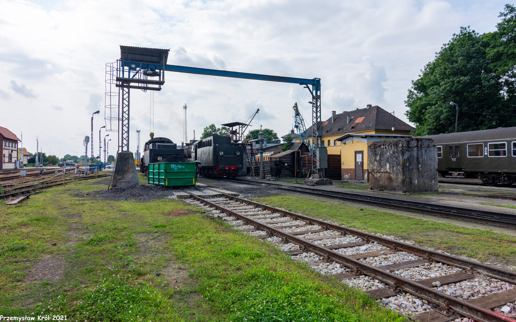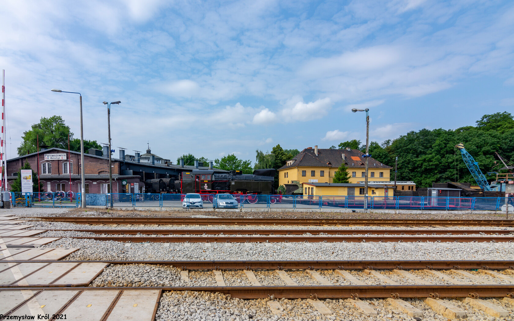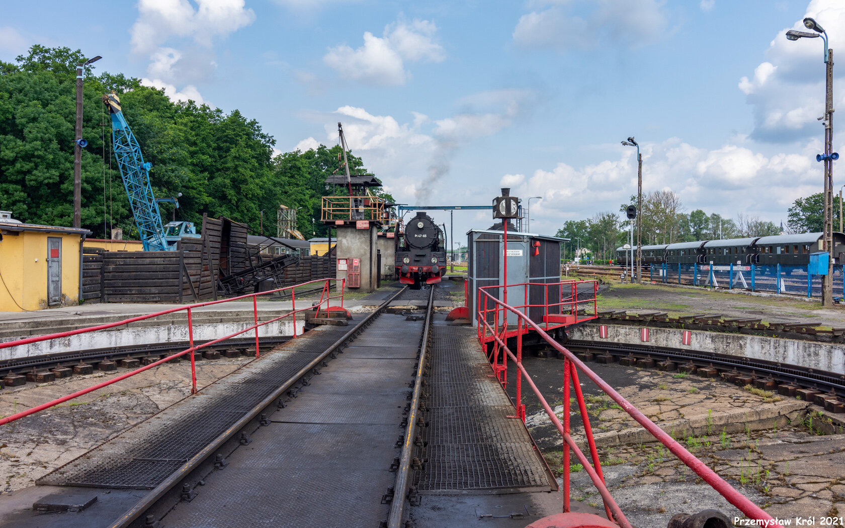 Tender tego parowozu jest odłączony i nie ma wózków, co się z nimi stało nie wiem ale raczej nie jest planowana naprawa umożliwiająca powrót tej maszyny do służby.