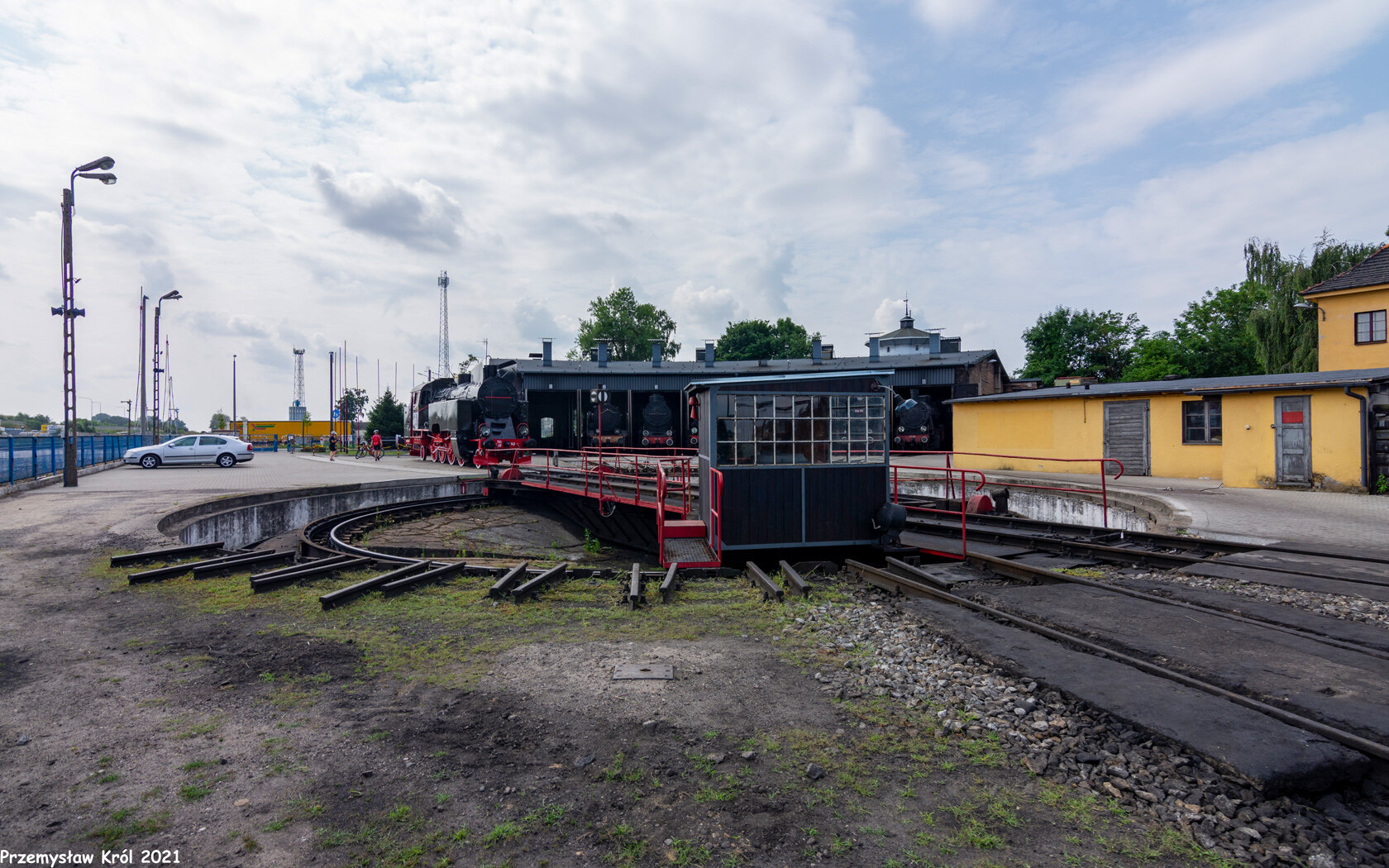 Czynna obrotnica służy do ustawiania parowozów w hali wachlarzowej.