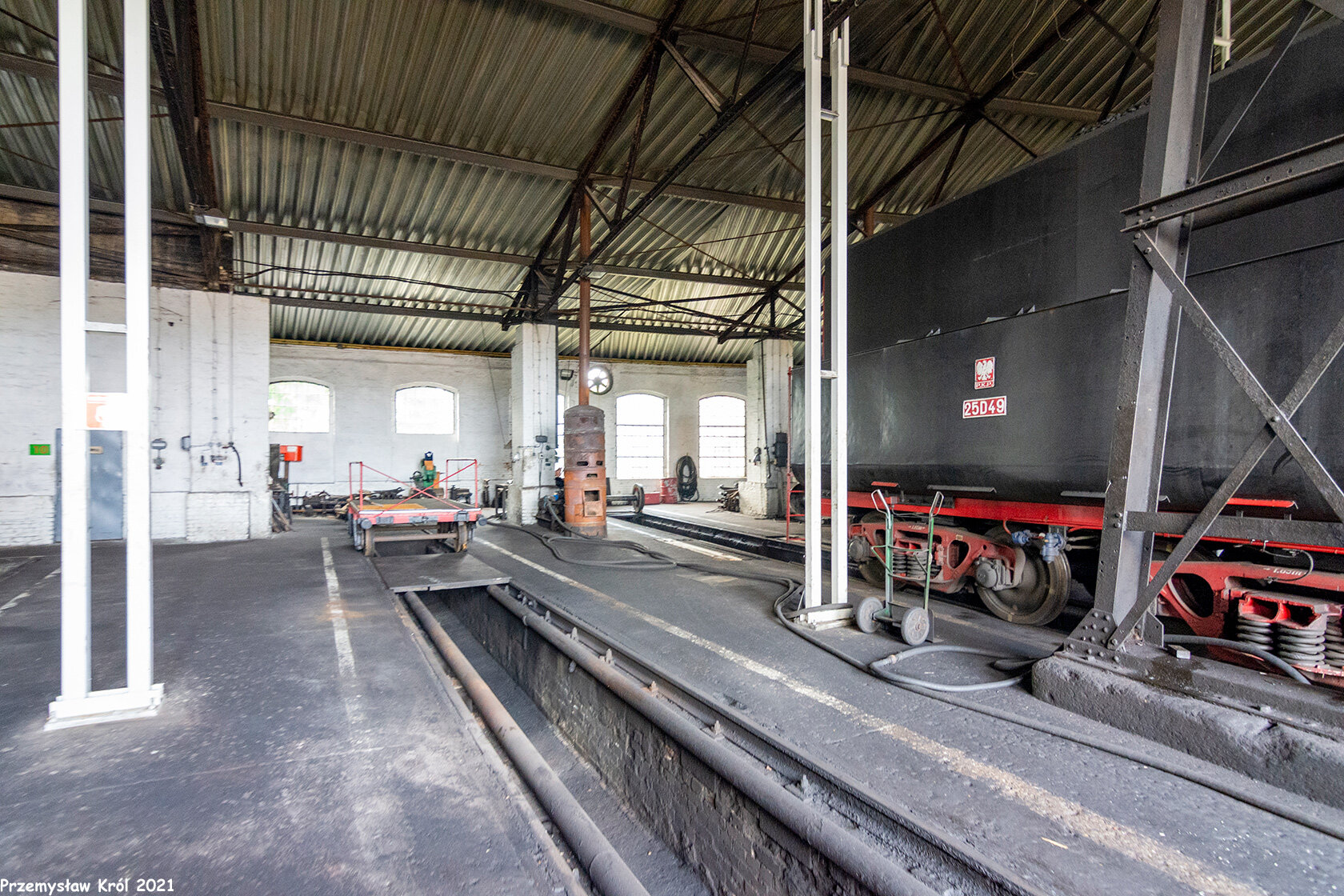 Maszyna z 1929 roku w hali wolsztyńskiej parowozowni. Maszyna jest w stanie nieczynnym.
