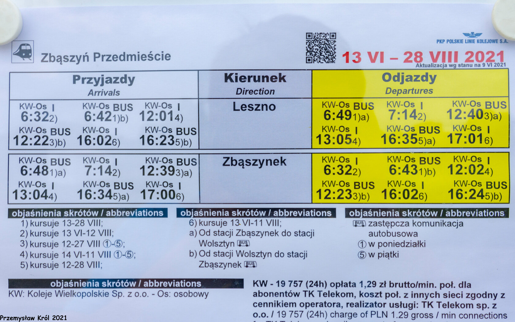 Rozkład jazdy pociągów z okresu od 13 czerwca do 28 sierpnia 2021 roku.