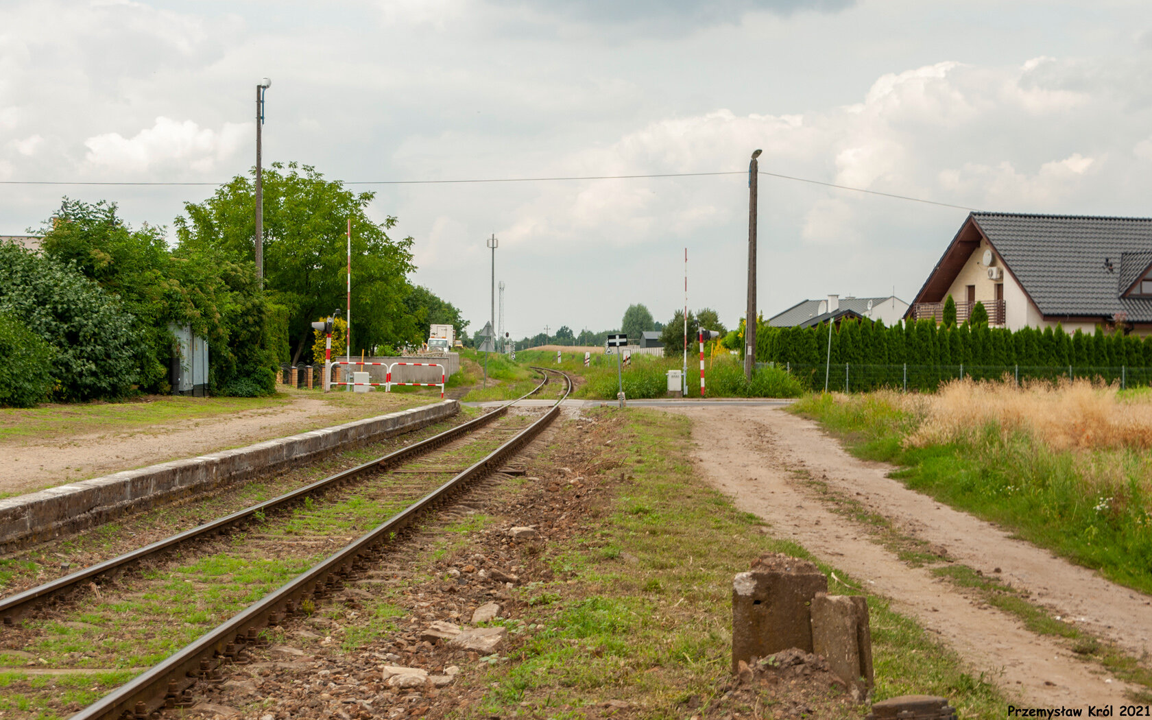 Ujęcie w kierunku Zbąszynia, daleko w zdjęciu można ujrzeć słupy trakcji elektrycznej linii kolejowej numer 3.