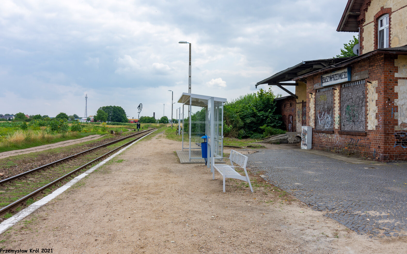 Przy tym peronie nie zatrzymują się pociągi osobowe stąd nie ma tu elementów dla pasażerów.