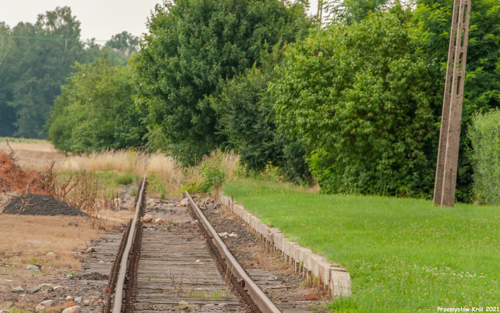 Dawna bocznica od lat nie jest wykorzystywana, pozostał skrajnik czyli urządzenie do mierzenia skrajni załadowanego wagonu.