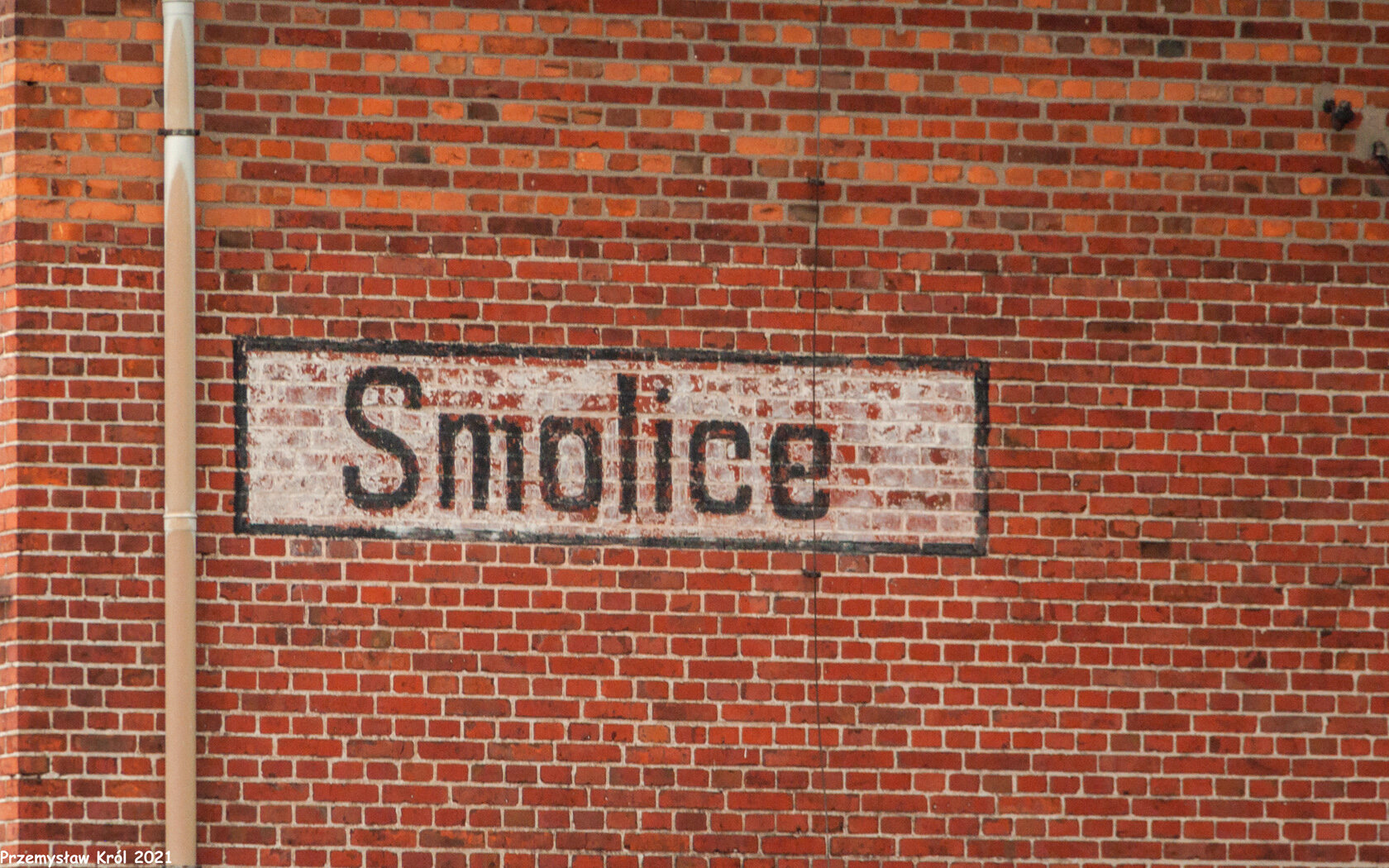Nazwa stacji zza płota. Nowe tablice stosowane przez PKP PLK dodatkowo mają "z tyłu" symbol pociągu.