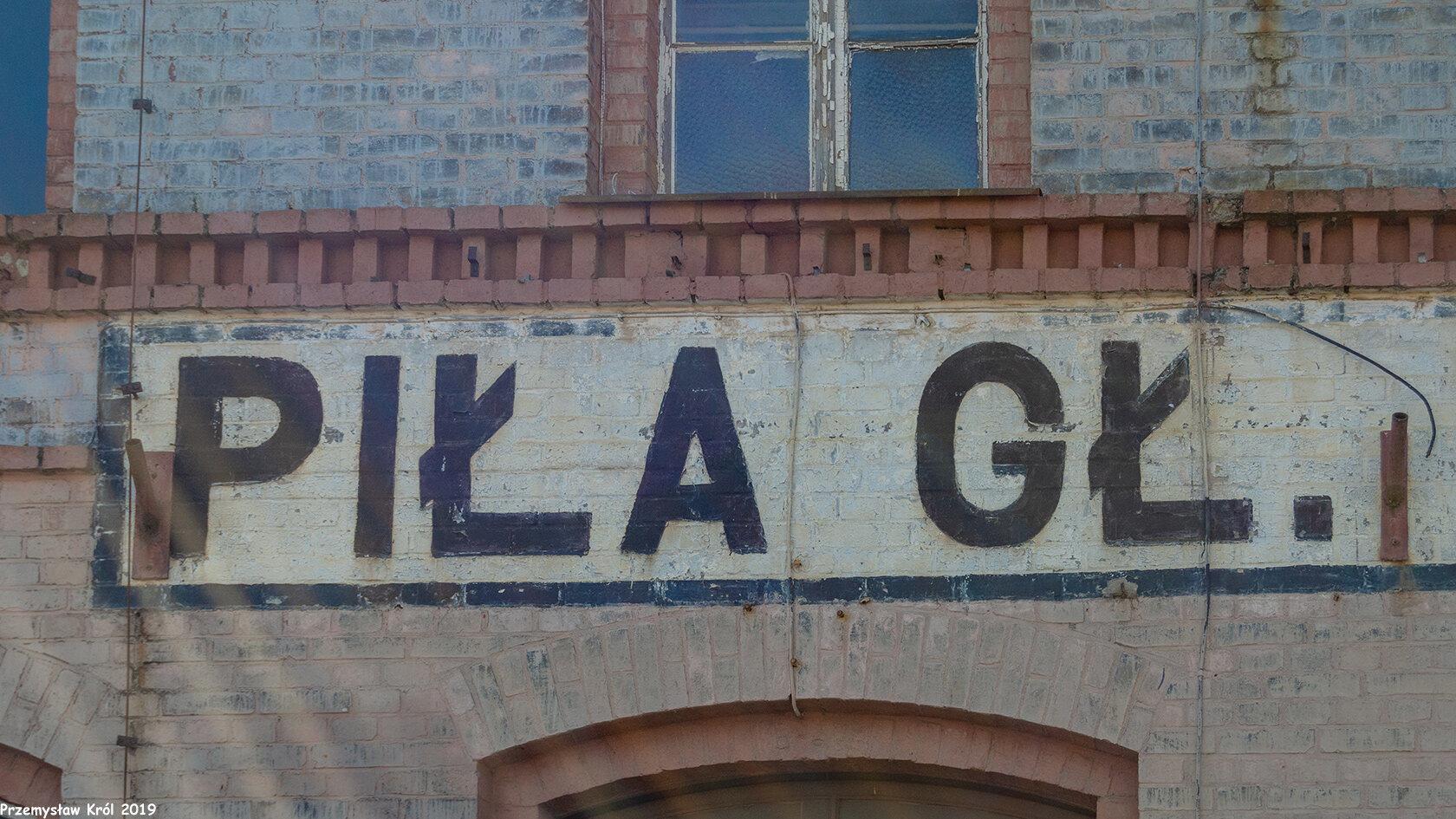 Nazwa stacji na jednym z budynków dworcowych.