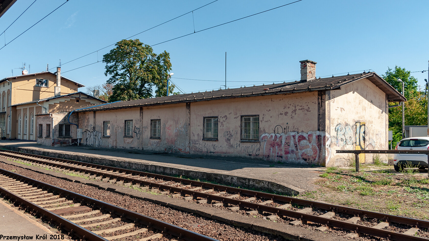 Najdalej oddalony od obecnych peronów budynek nieco przypomina dworzec ale chyba jednak nie był to dworzec stacyjny, a jedynie mieszkania dla pracowników kolej.