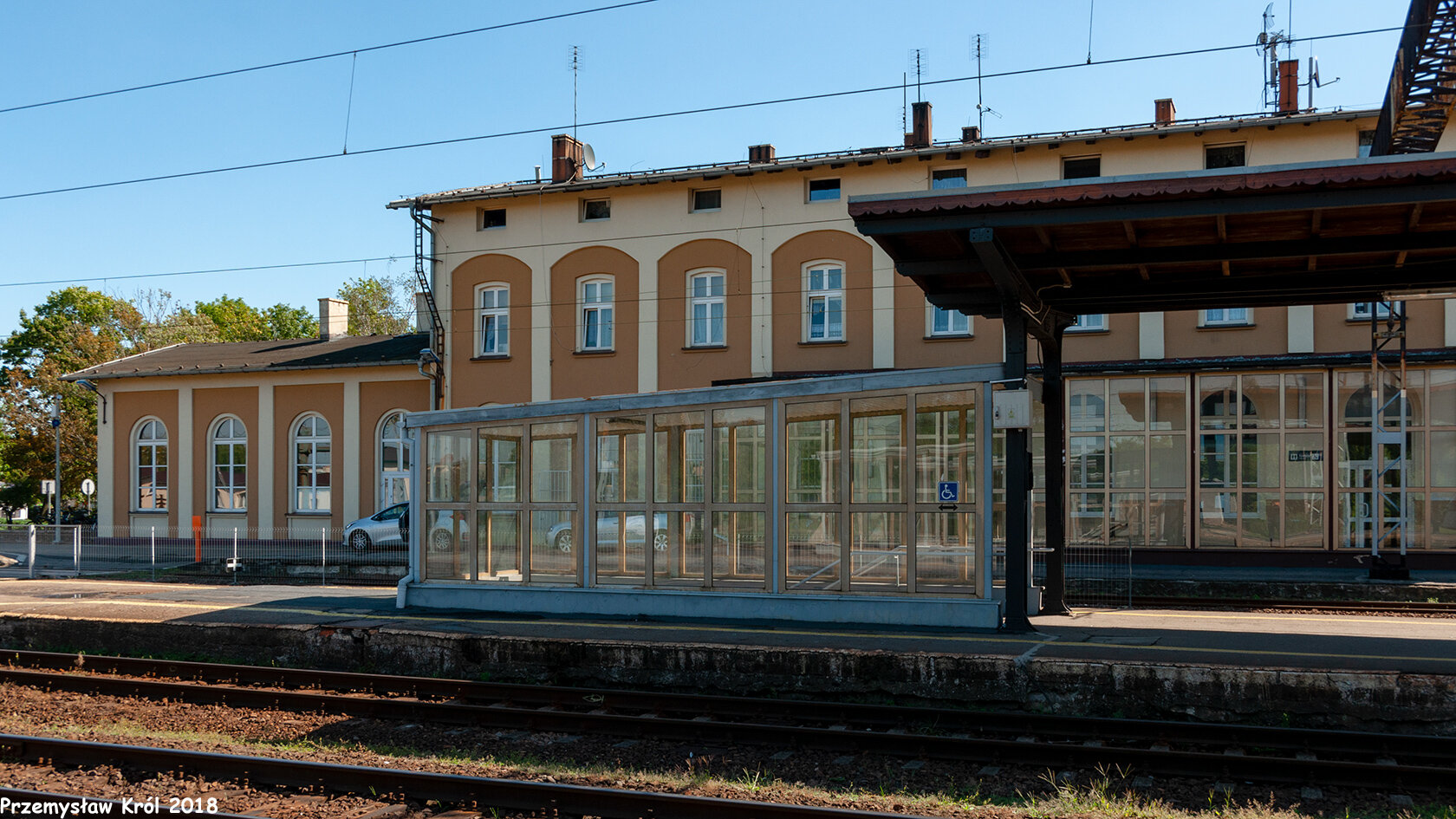 Ujęcie na budynek dworca kolejowego od strony pierwszego peronu.