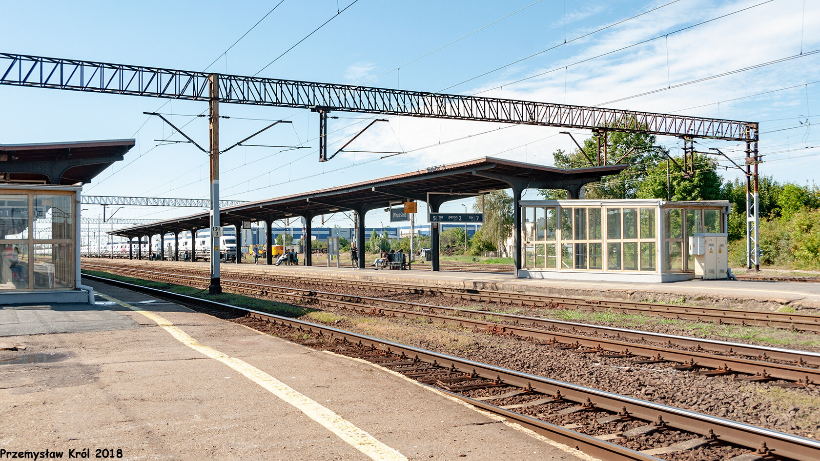 Peron numer 2 i tory 5 i 7, na torze numer 7 stoi pociąg jadący do Poznania.