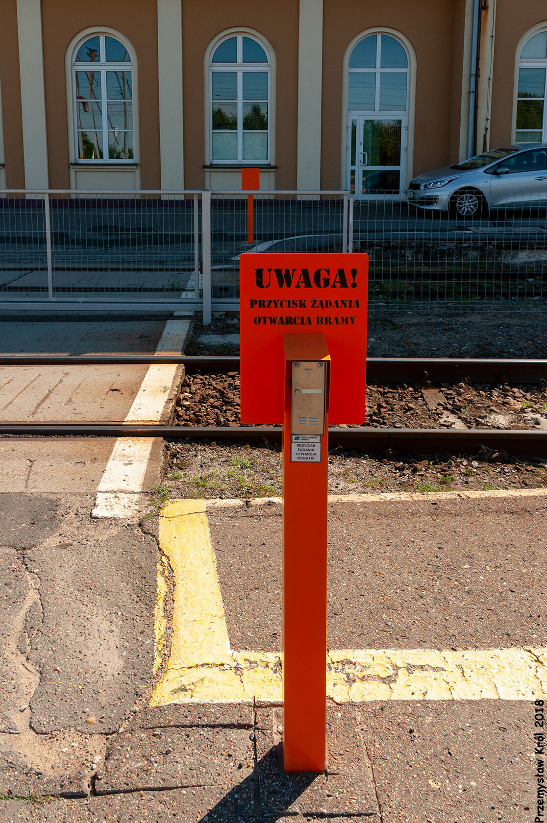 Bramę przejścia przez tory otwiera dyżurny ruchu po wciśnięciu przycisku.