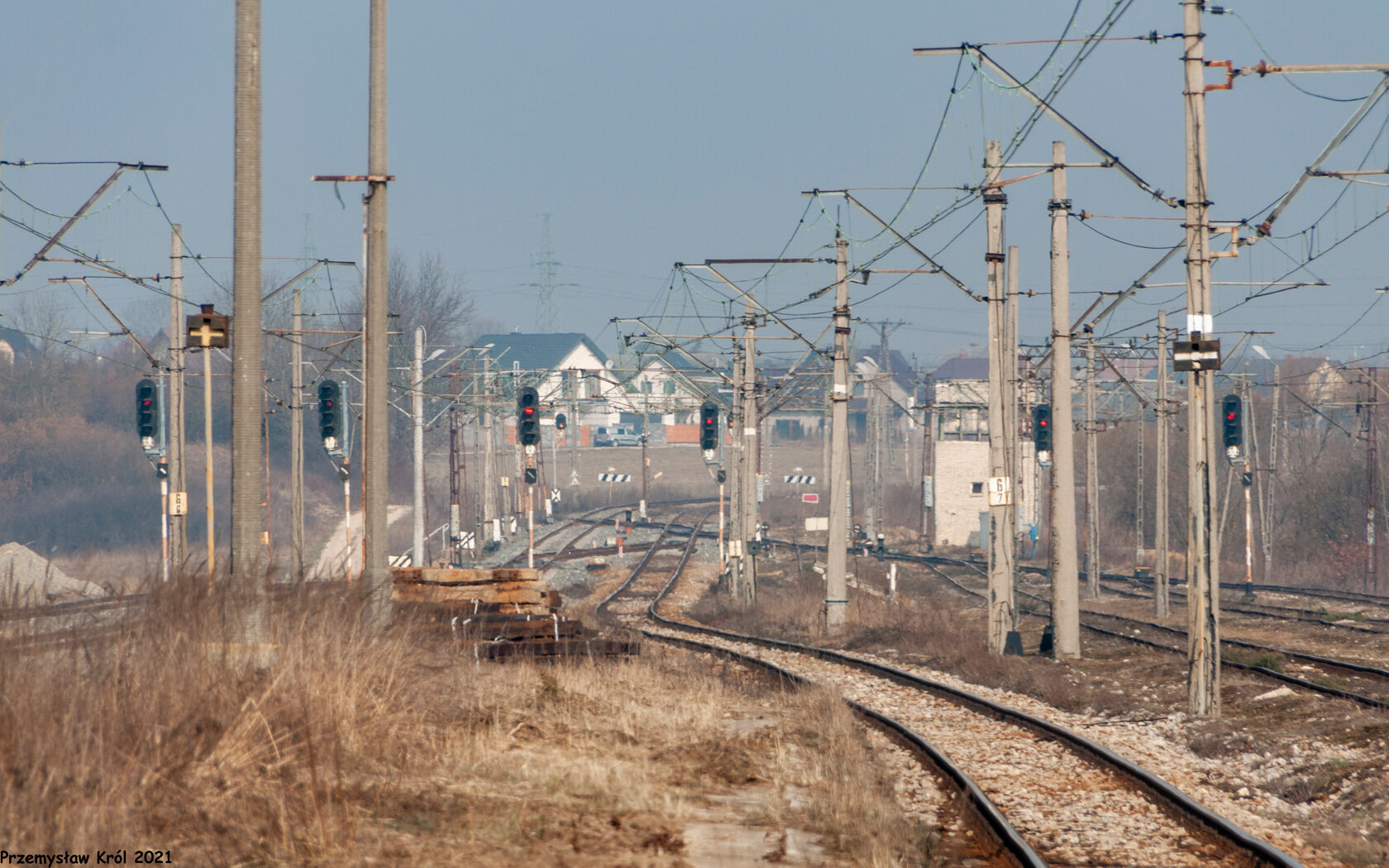 Kadr na północ w tyle zdjęcia widać już wskaźniki W3 przed stacją Brzeziny.