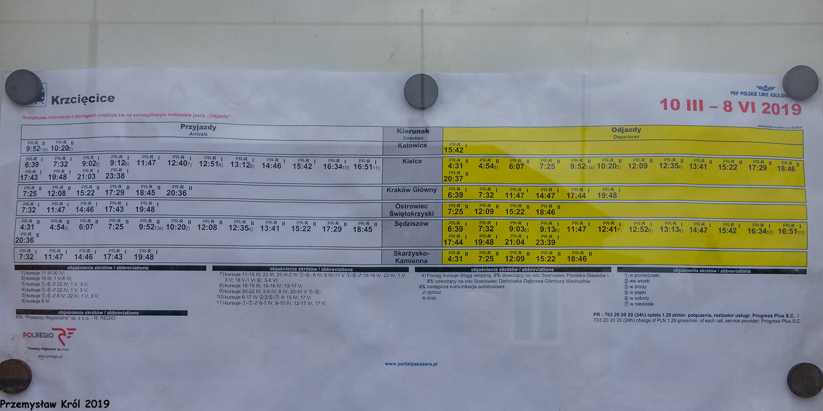 Rozkład jazdy pociągów nie wiele się zmienił w stosunku do tego z 2019 roku.