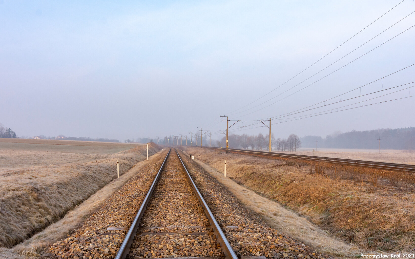 Szerokie tory linii 65 w stronę Sędziszowa.