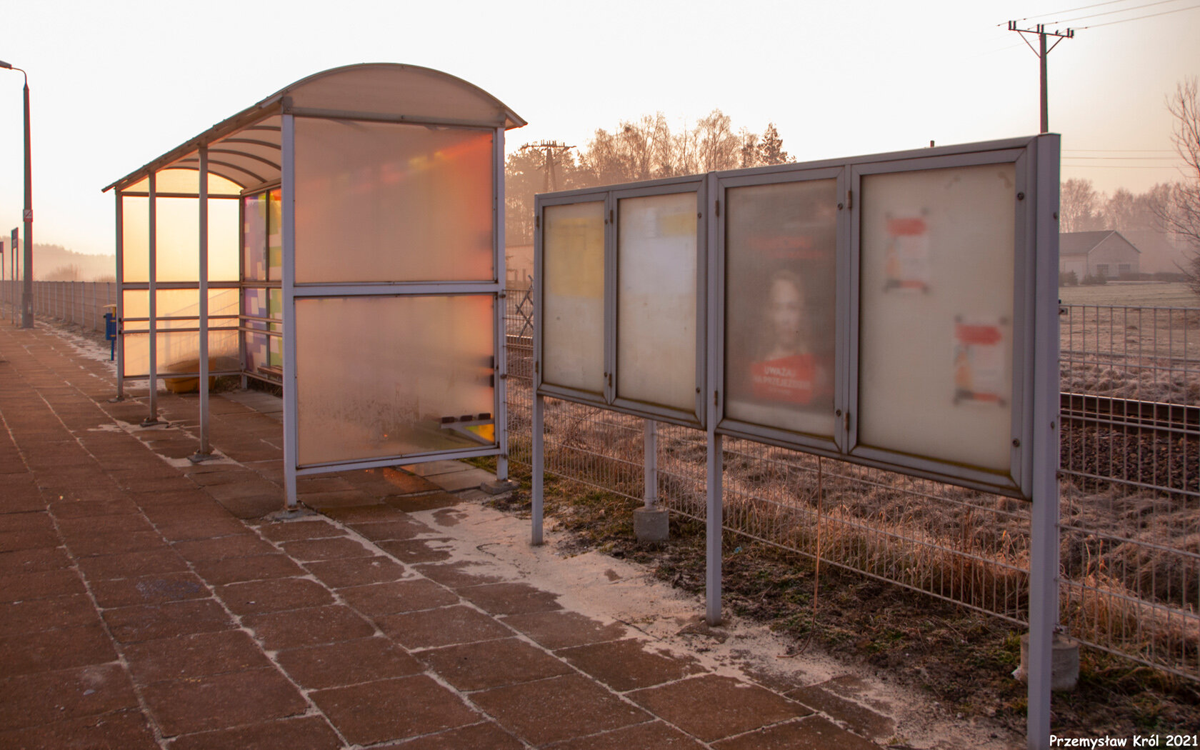 Przejazd drogowy, przy którym ulokowany jest przystanek kolejowy.