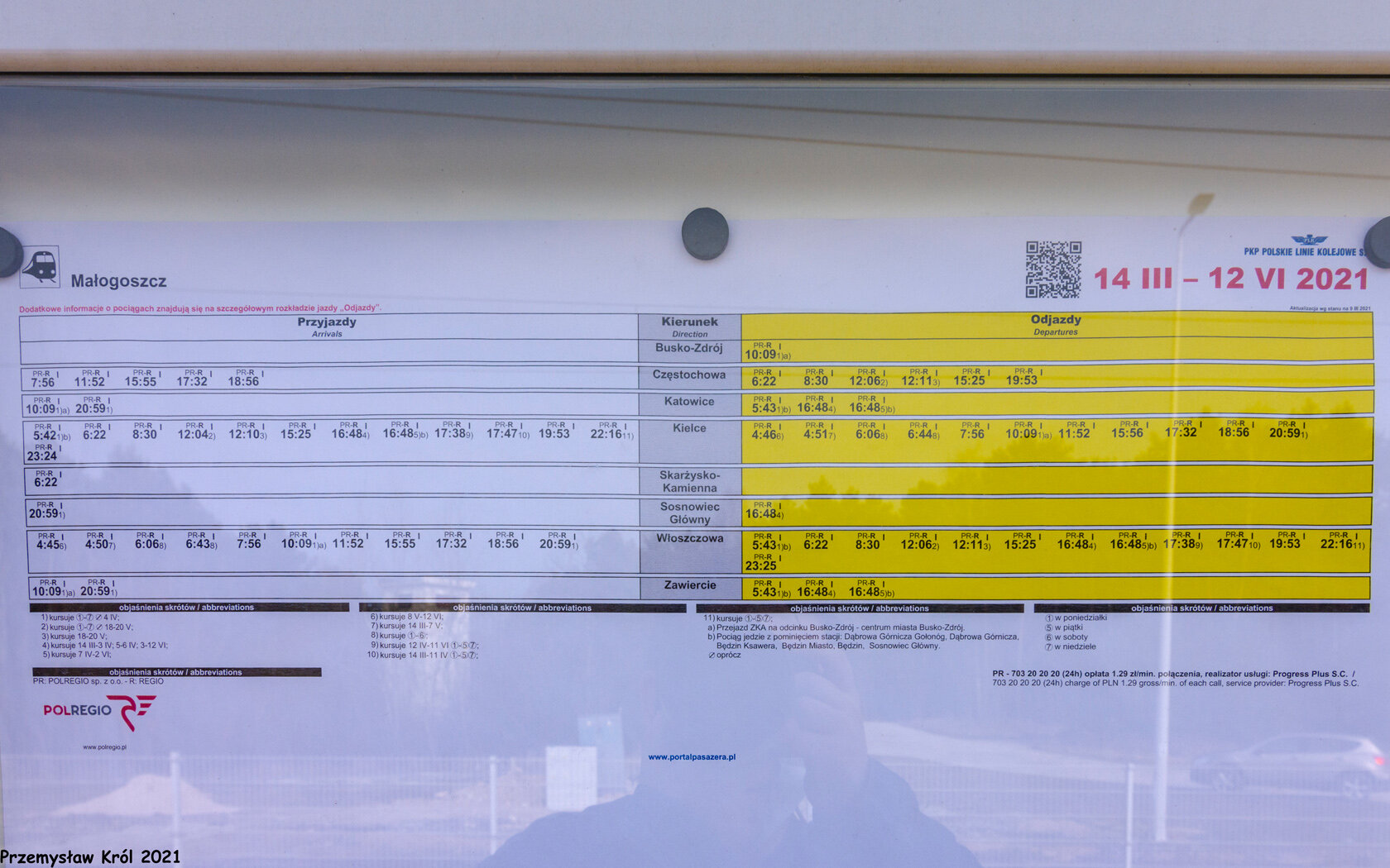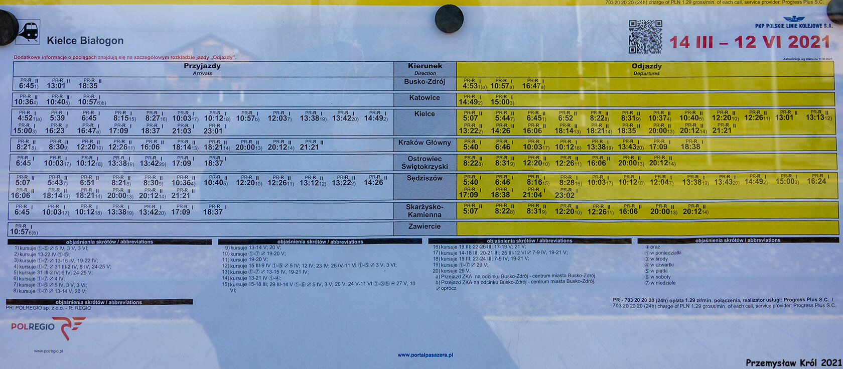 Rozkład jazdy na pierwszym przystanku za Kielcami.