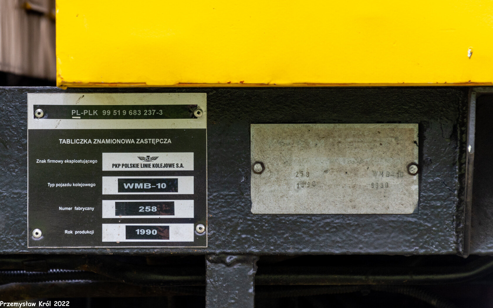 Jeszcze czytelna tabliczka znamionowa pojazdu torowego.