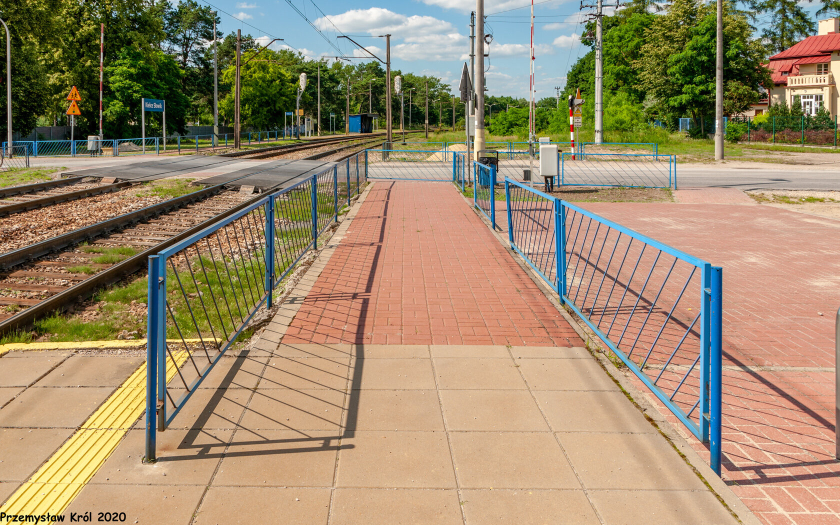 Widok przejście przez tory od zachodniej strony peronów.