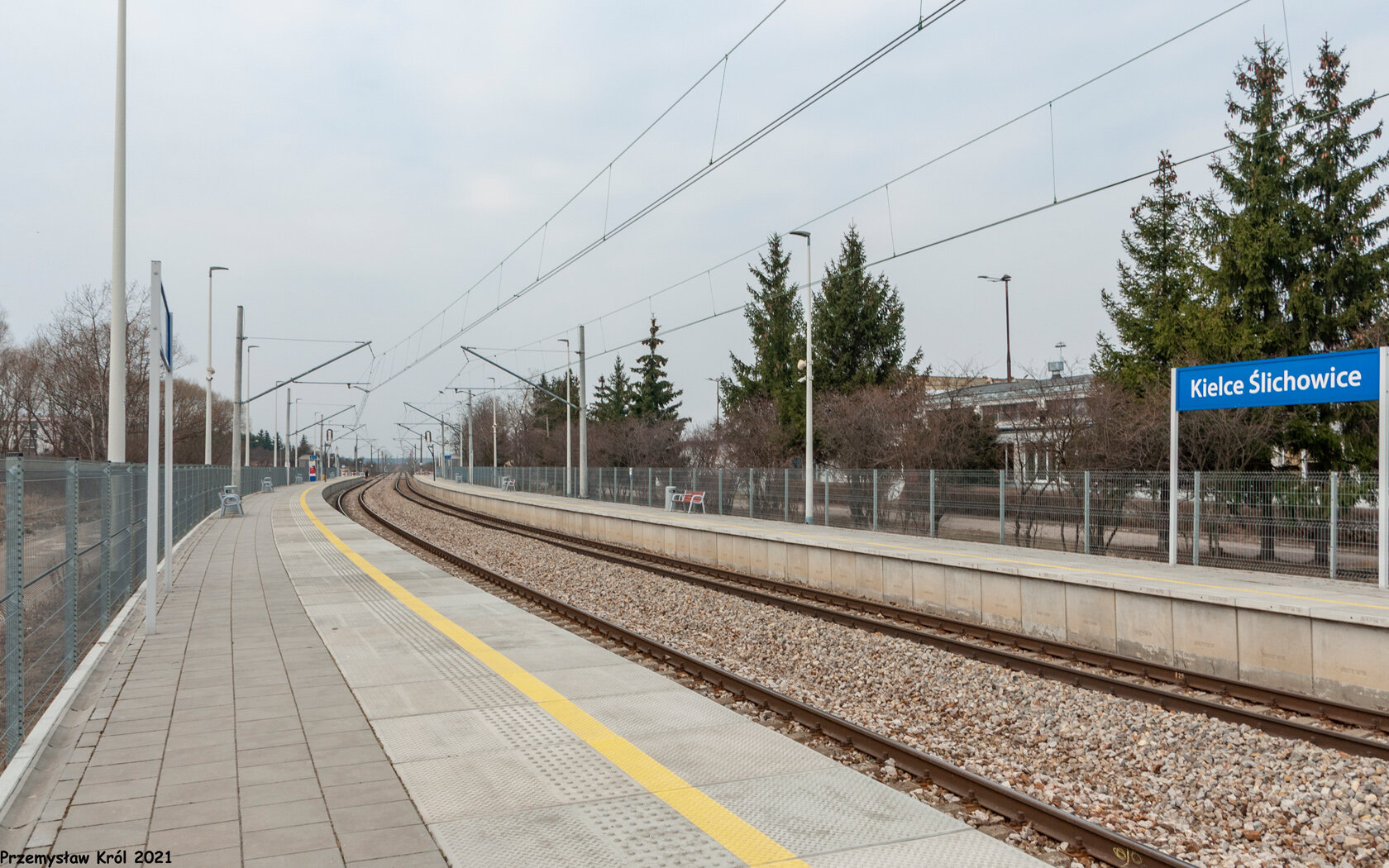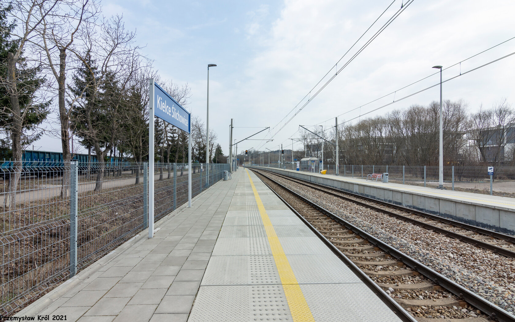 Z tego peronu odjeżdżają pociągi jadące w stronę centrum Kielc.