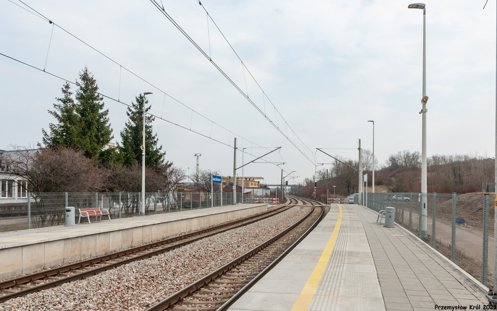 Perony zostały zbudowane na lekkim łuku linii 61.
