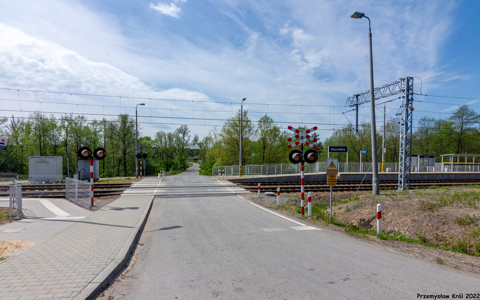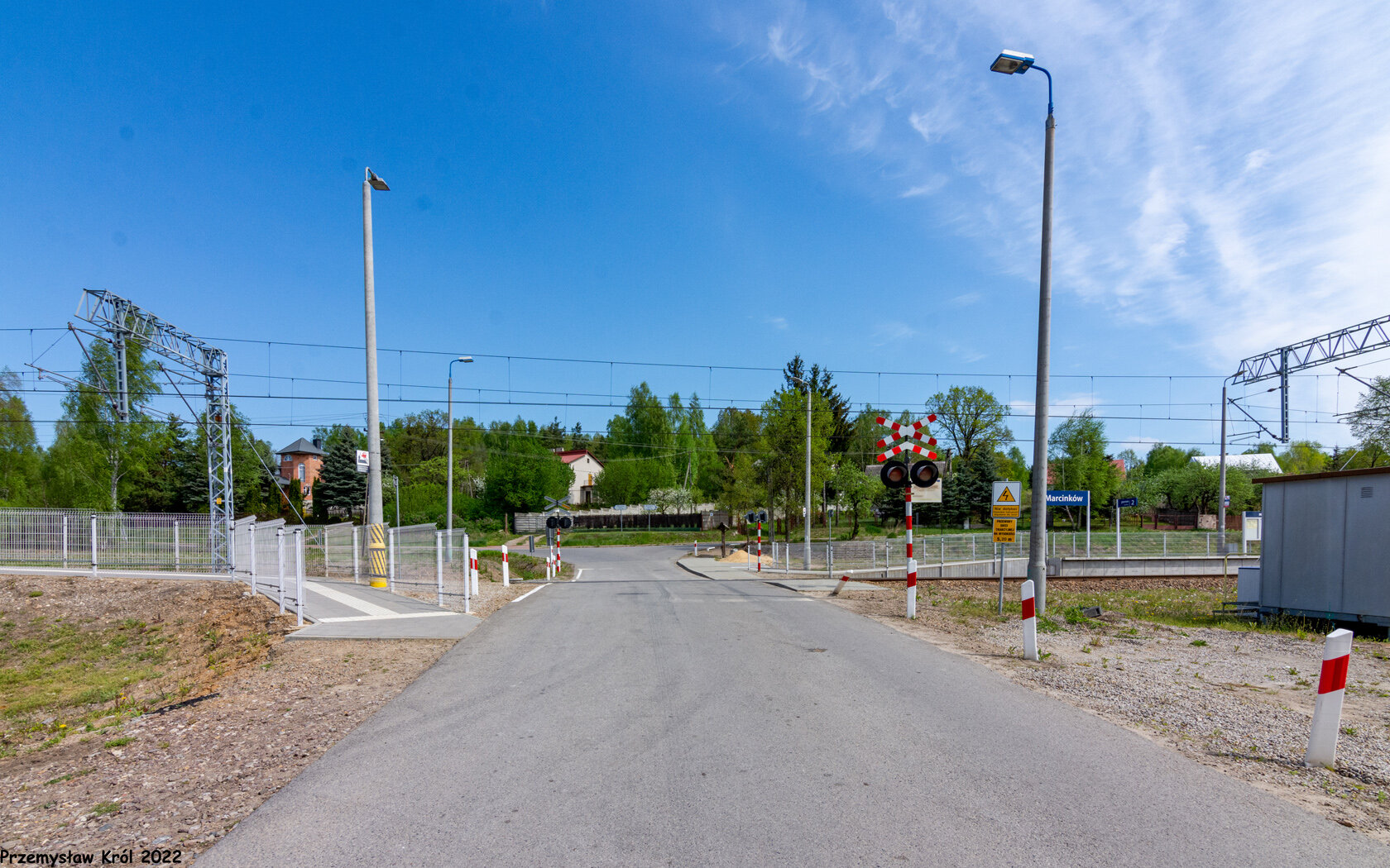 Przejazd drogowy, który dzieli przystanek na pół. Widok z południa na północ.
