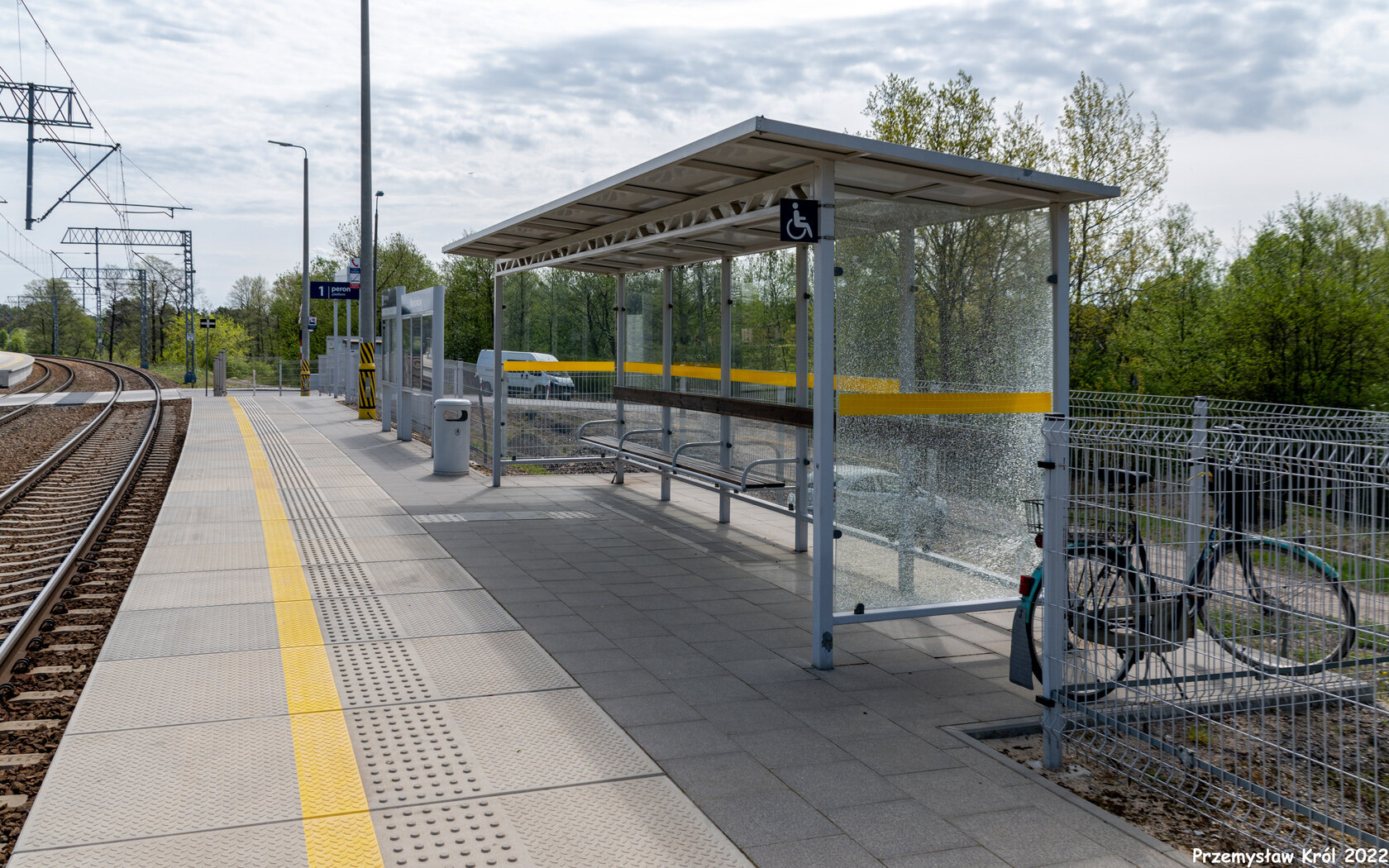 Druga wiata na drugim peronie, uszkodzona przez głupich ludzi.