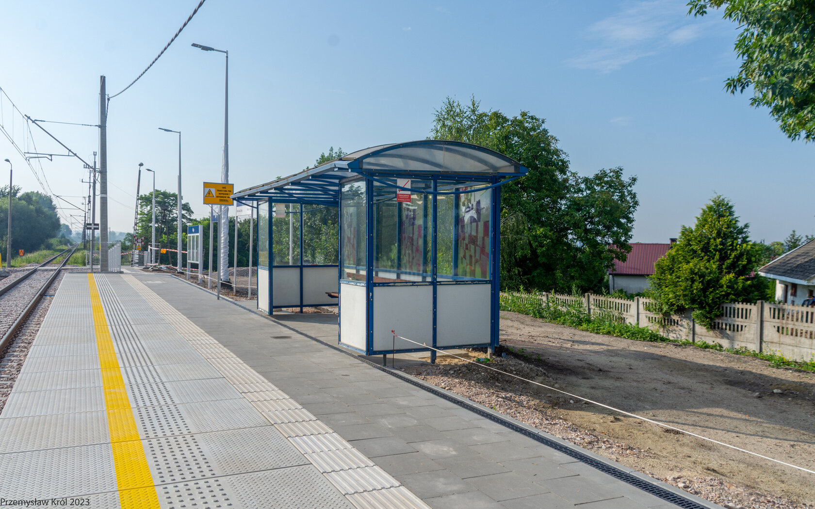 Na peronie jest mała wiata przystankowa.