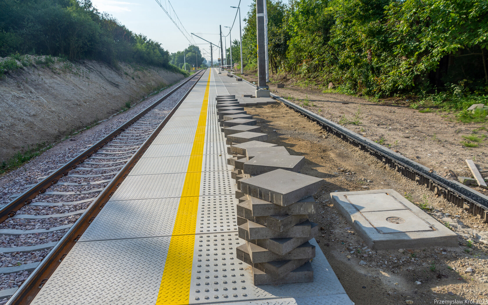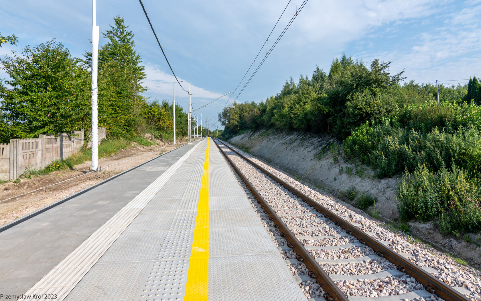 Północny koniec nowego peronu, jak widać na zdjęciu peron jest jeszcze nie wykończony.