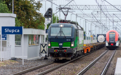 A ten gdzie jedzie? Być może pojazd Kolei Śląskich jedzie na przegląd do Mińska Mazowieckiego lub do Warszawy do instytutu Kolejnictwa. W Piotrkowie Trybunalskim się nie zatrzyma.