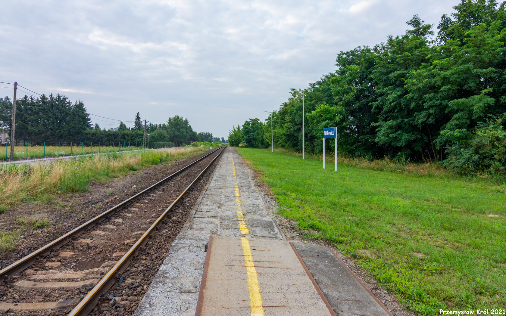 Dalsza część peronu, nie ma tam już żadnych ławek dla pasażerów.