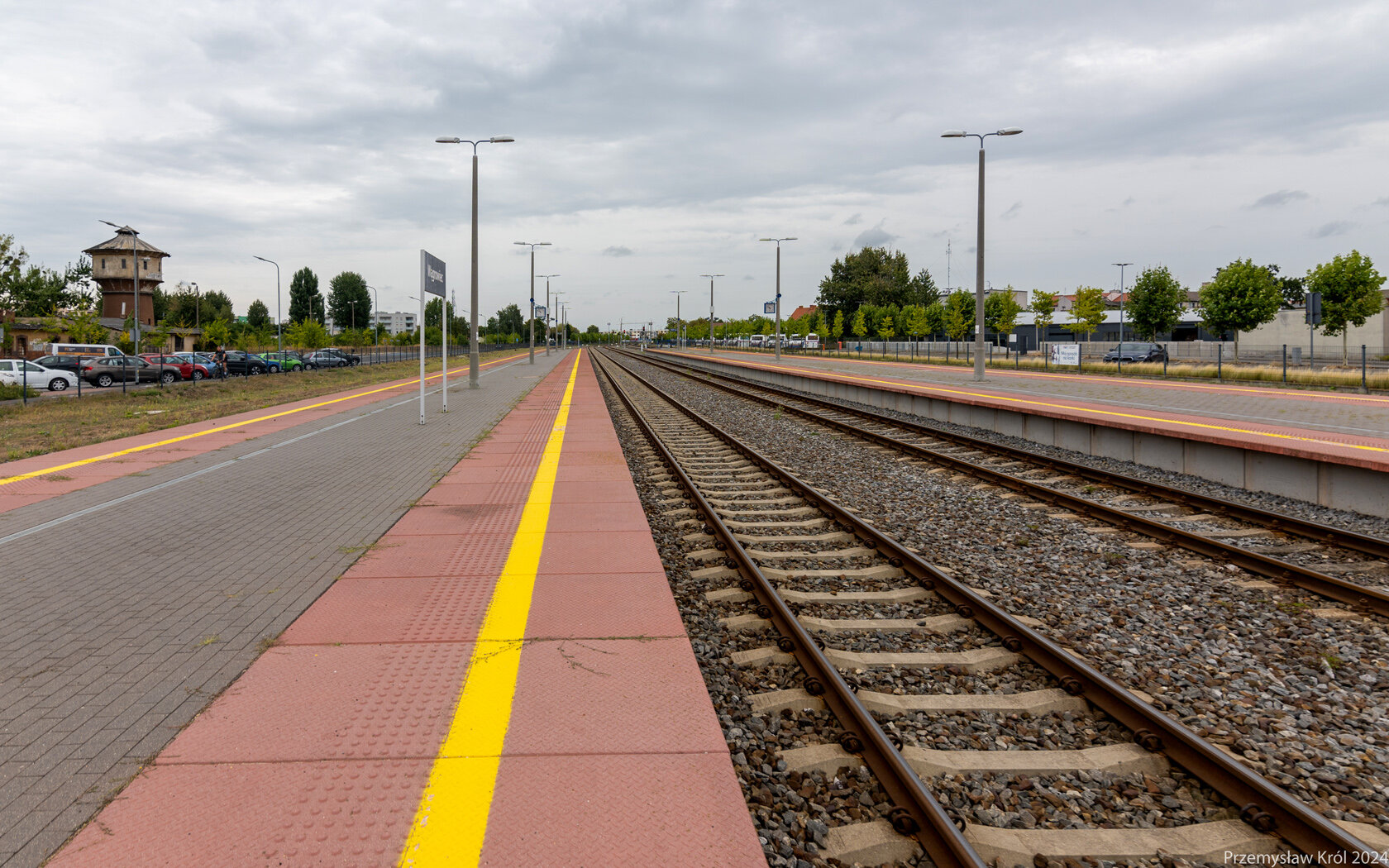 Im dalej od wejścia tym mniej elementów dla pasażerów (kadr w kierunku końca peronu).