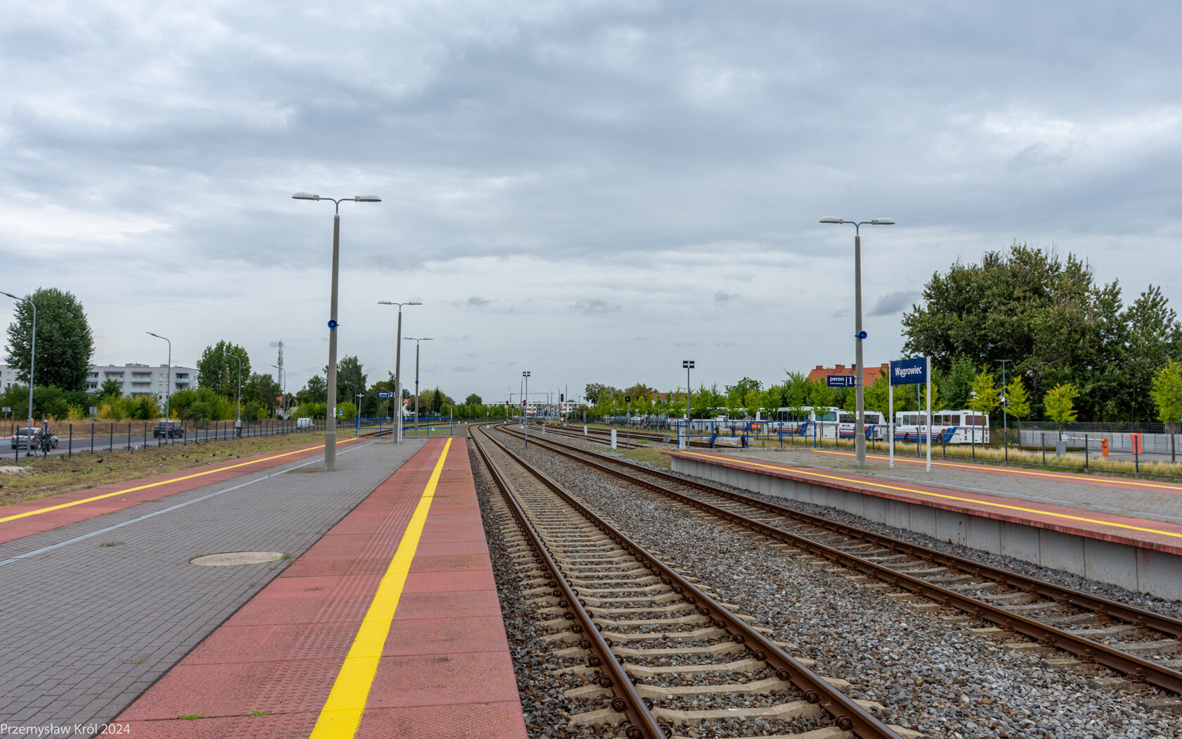 Peron na całej długości jest oświetlony, to współczesny wymóg aby nocą oświetlać perony.