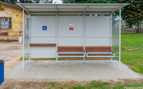Wiata dla osób oczekujących na pociąg przy torze numer 1.