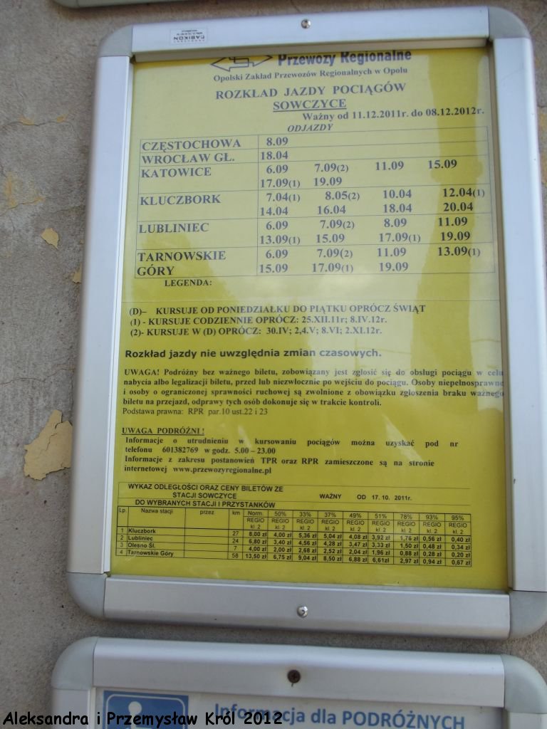 Gablota z rozkładem jazdy na pierwszym peronie.