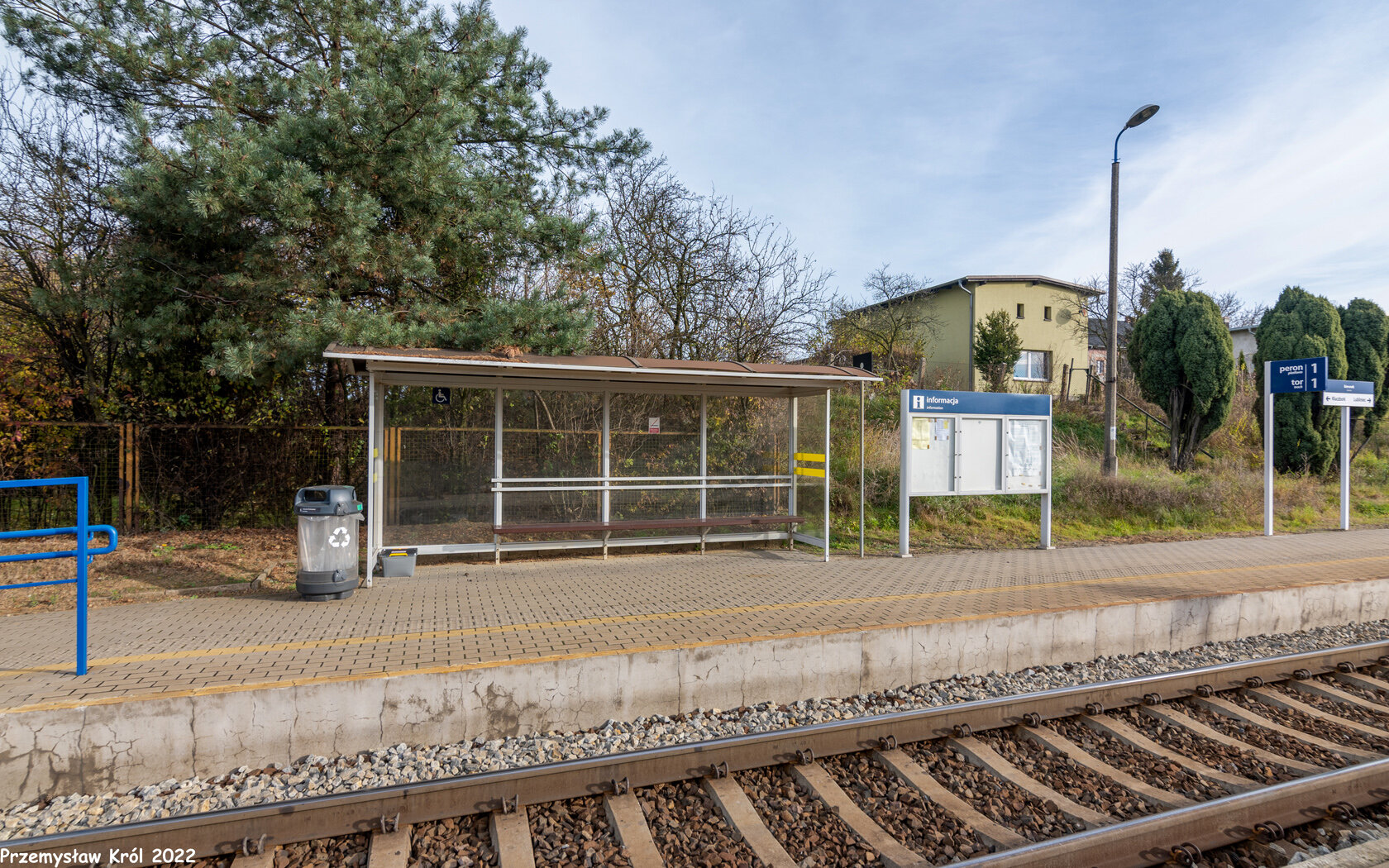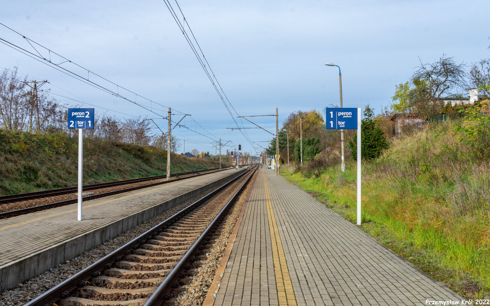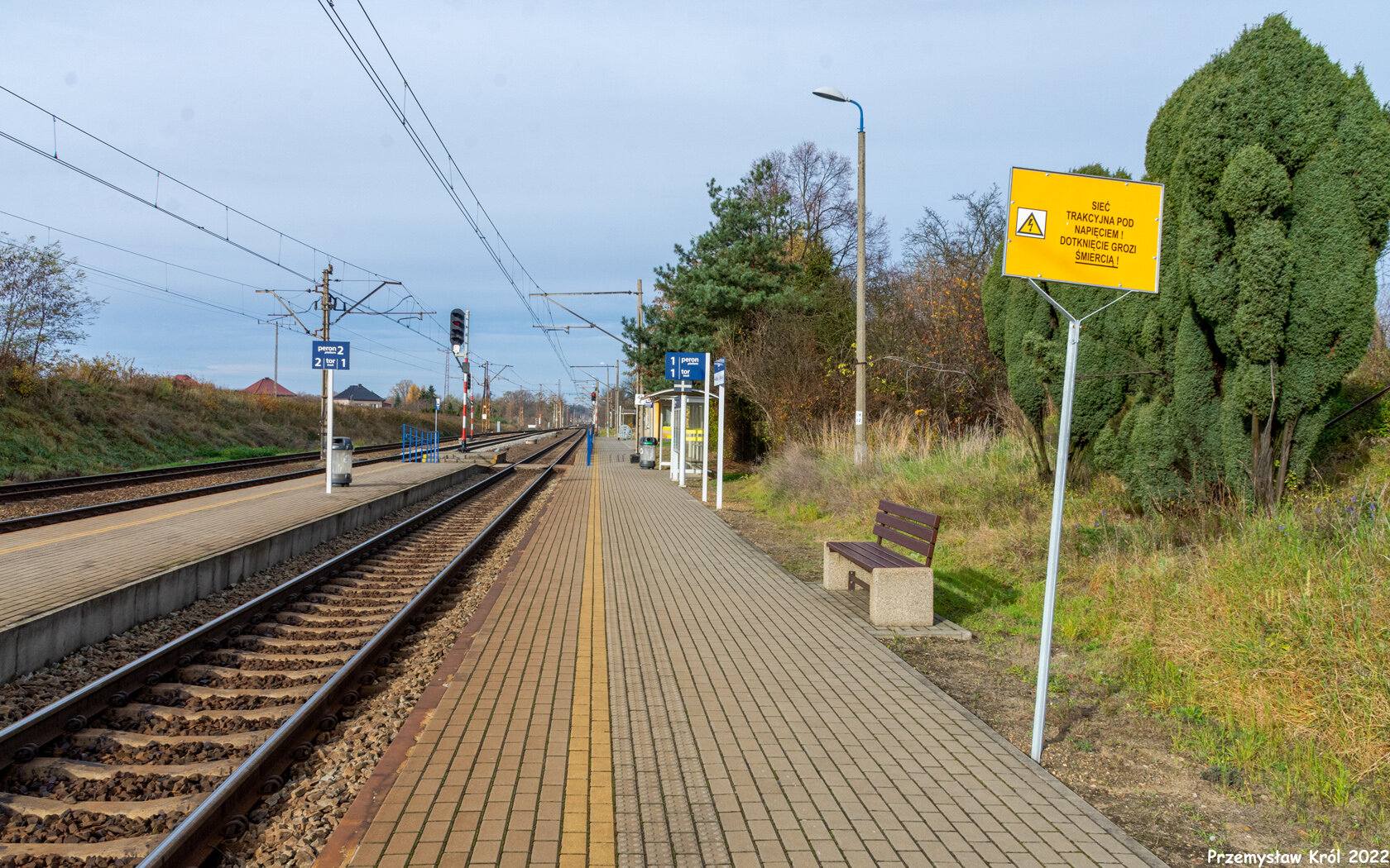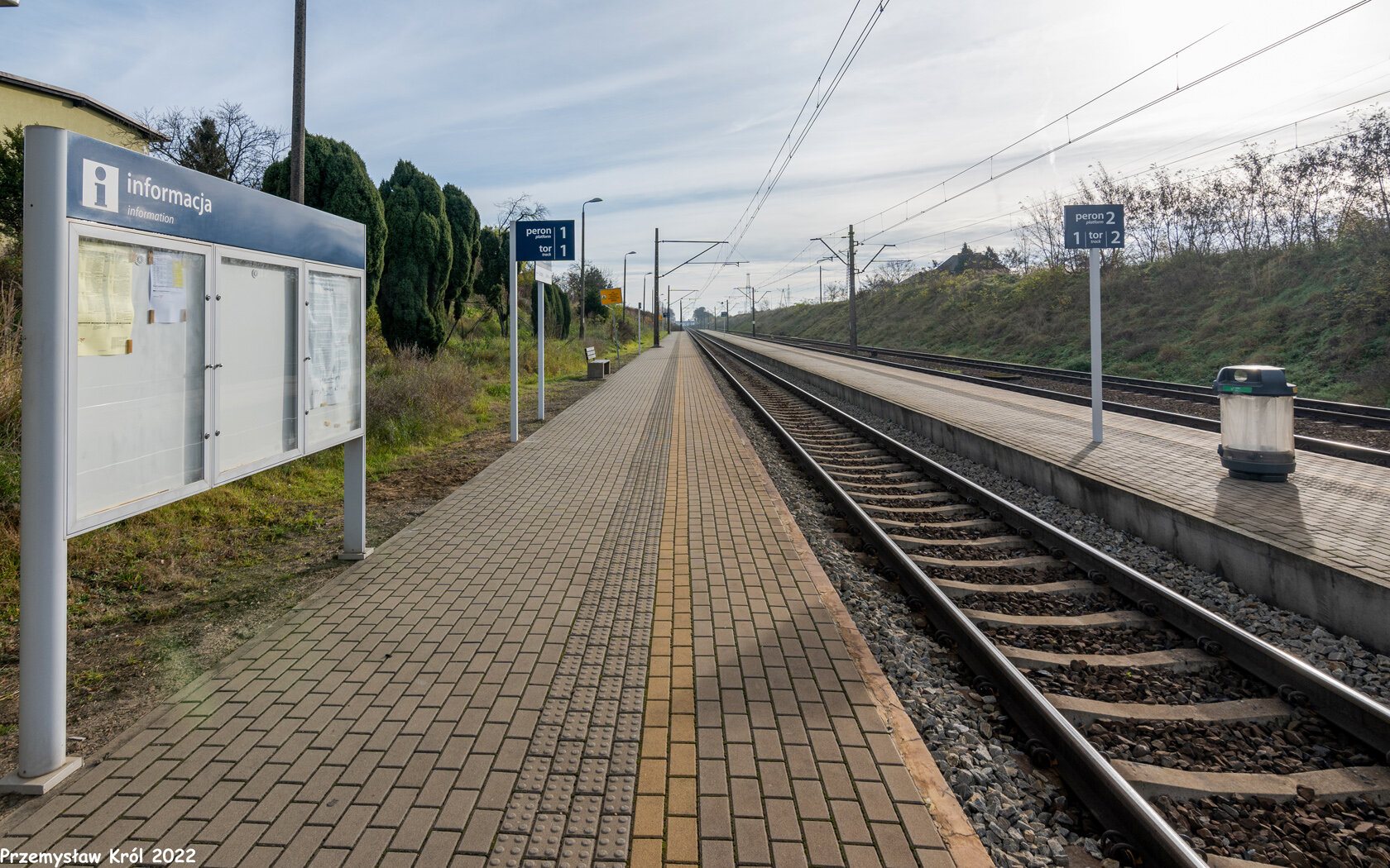 Drugi peron jest nieco dłuższy niż pierwsza platforma. Z tego peronu odjeżdżają pociągi w kierunku Lublińca.